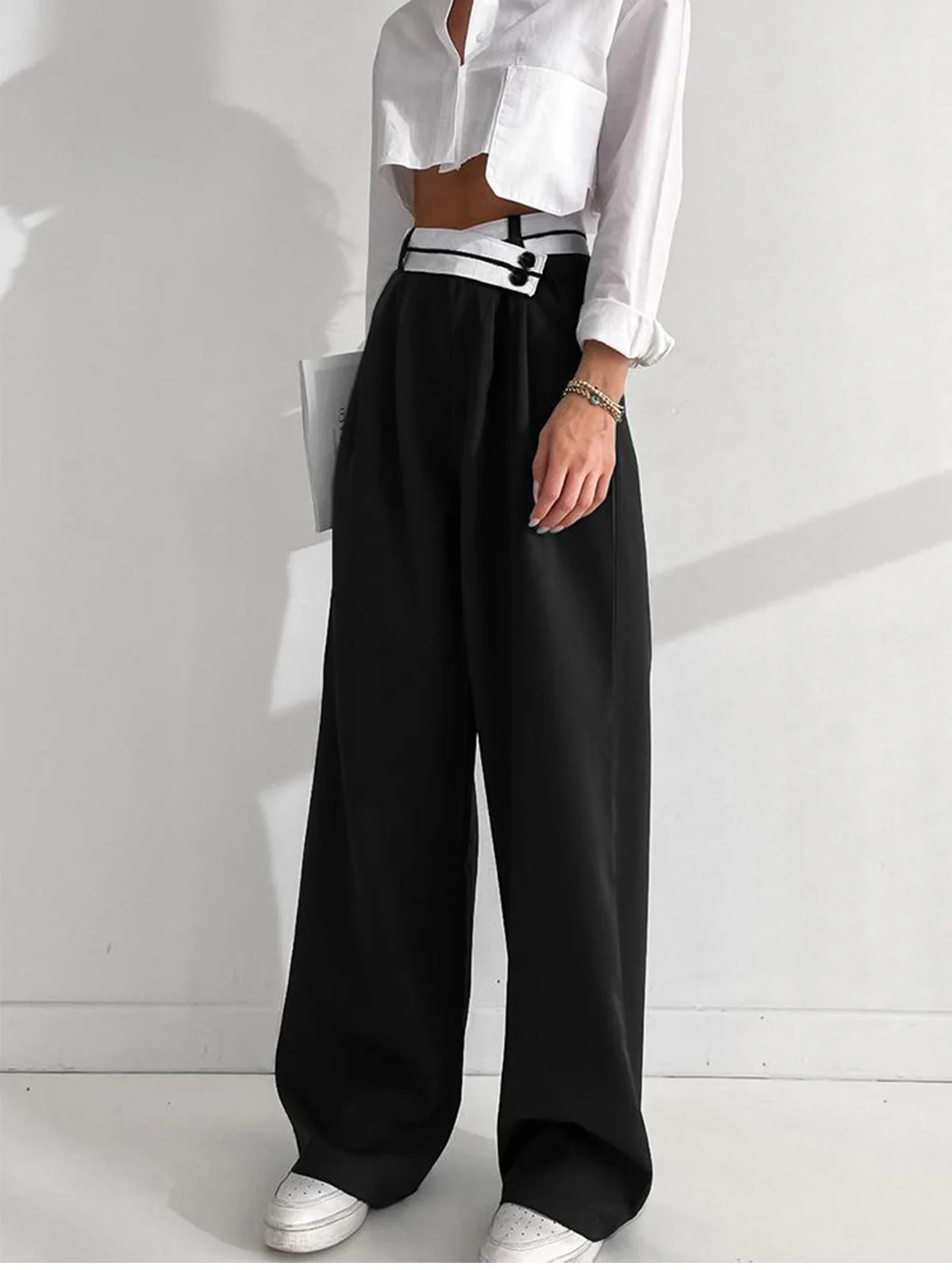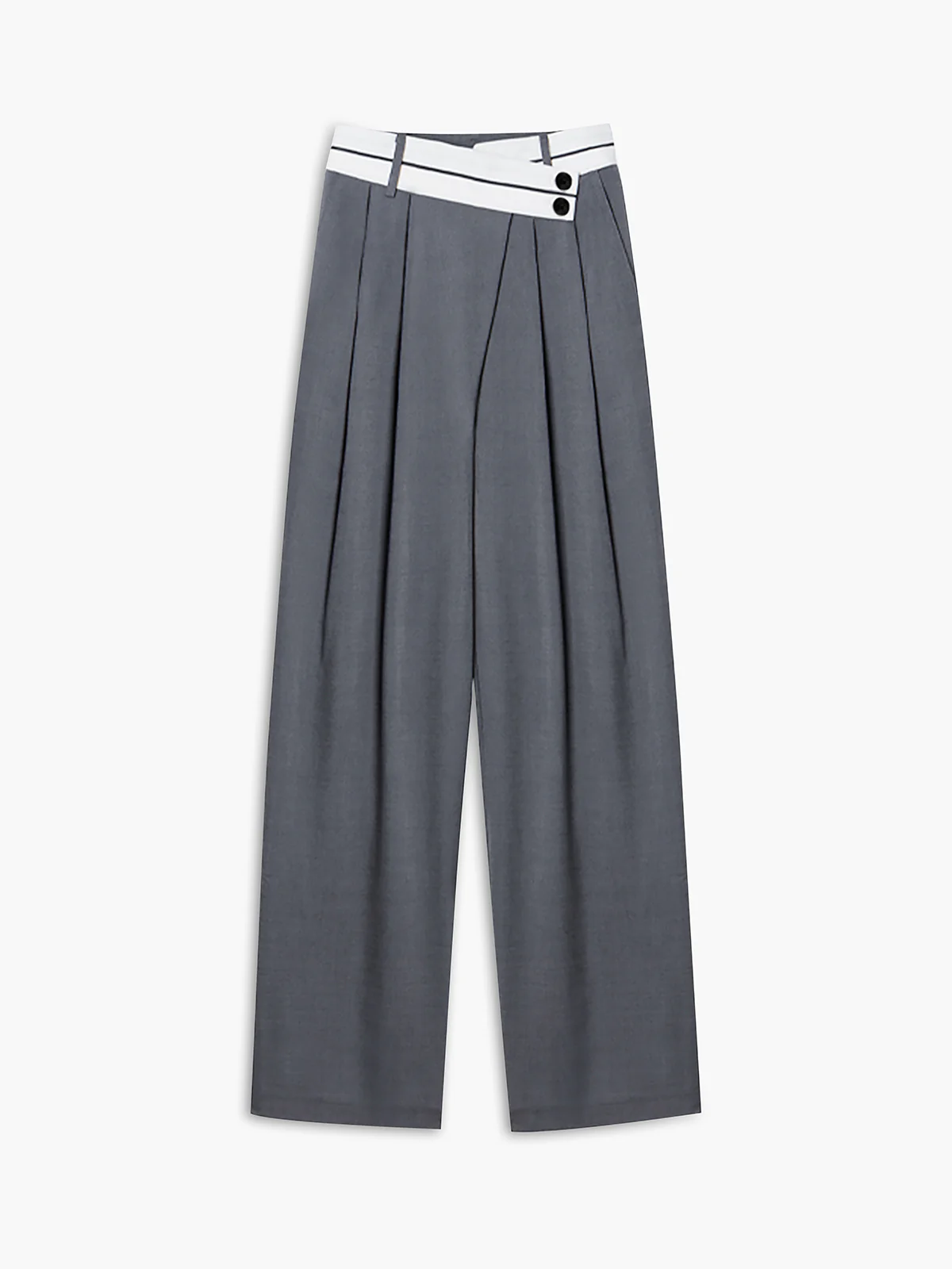 Asymmetrical Contrast Waistband Wide Leg Dress Pants