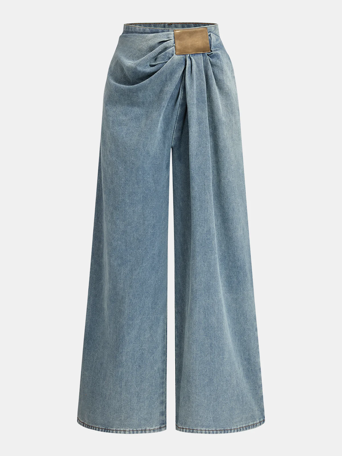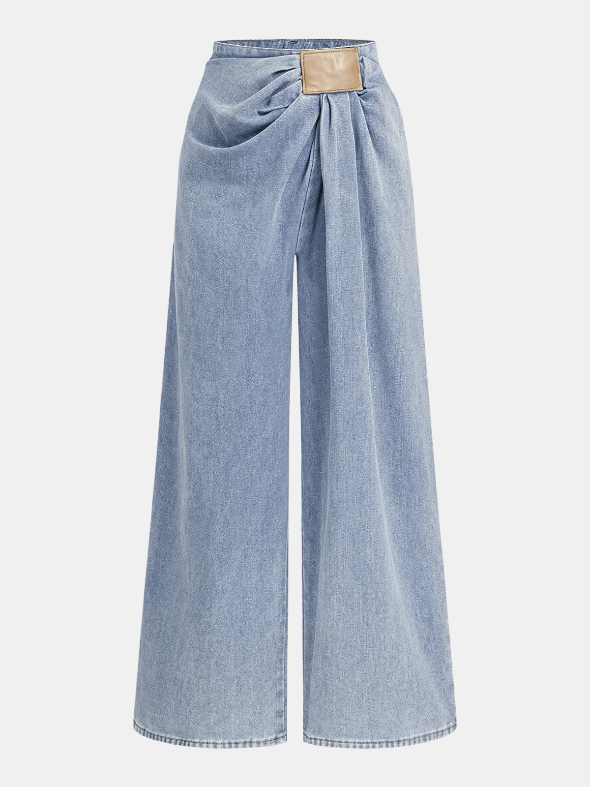 Asymmetrical Ruched Denim Wide-Leg Pants