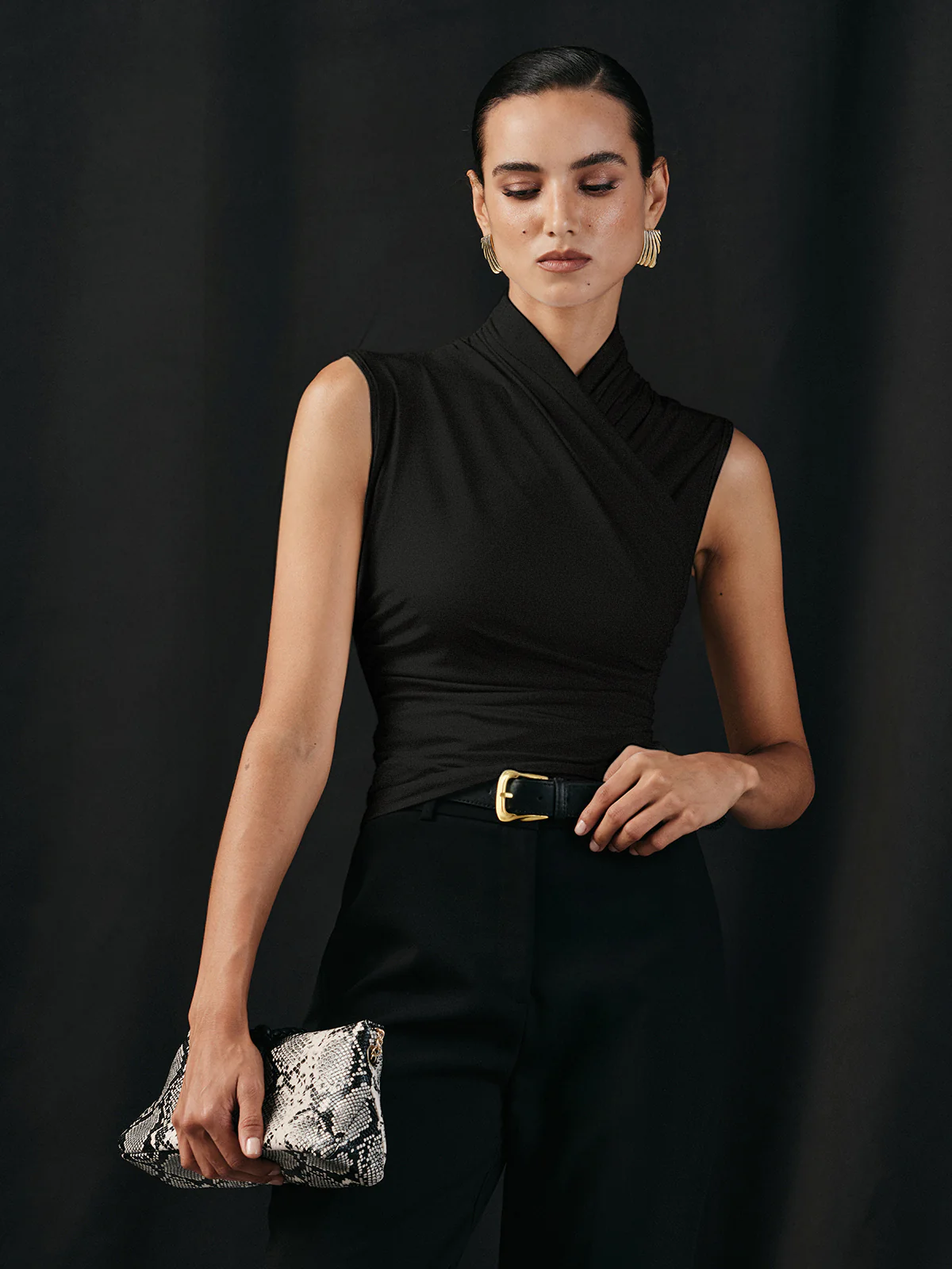 Cross Neck Ruched Tank Top