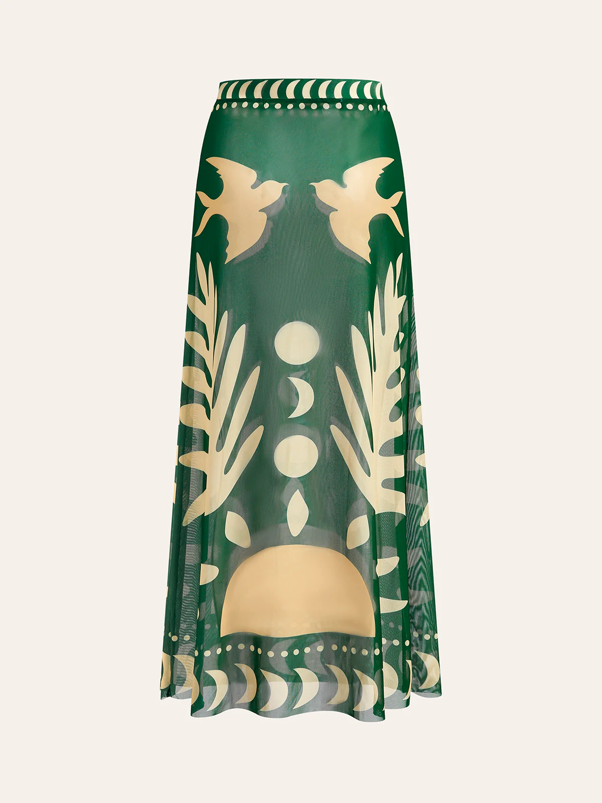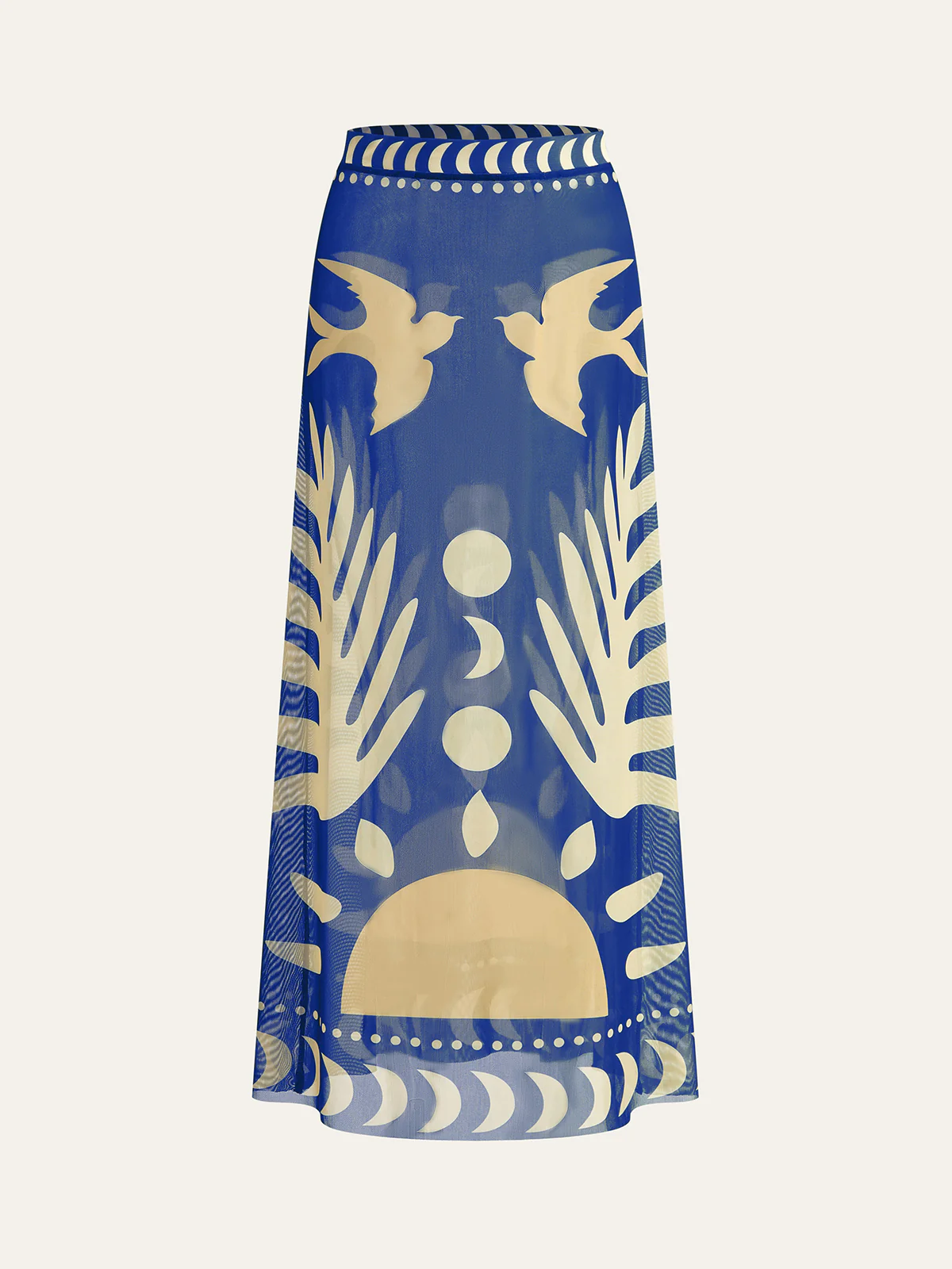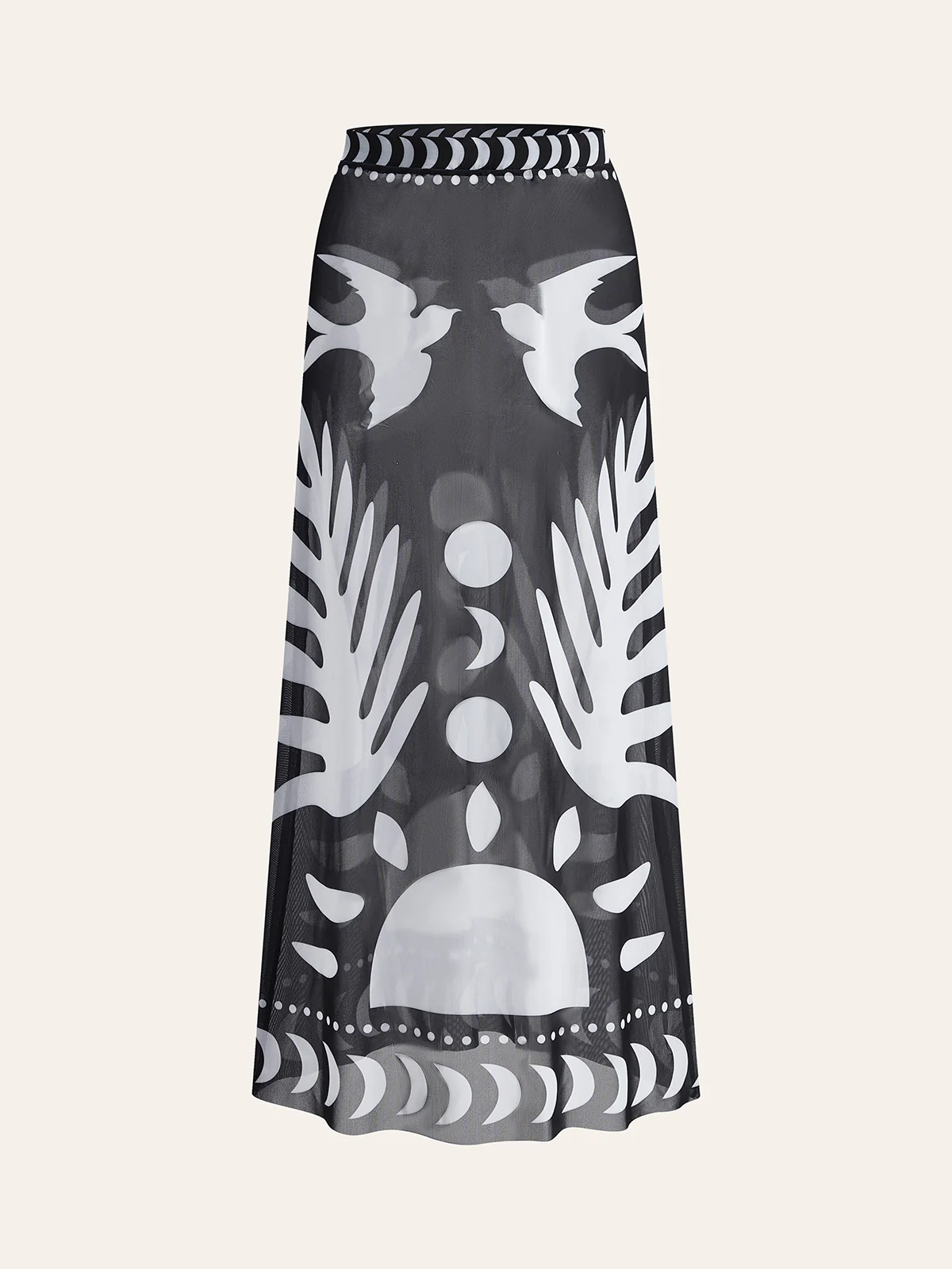 Bird Print Mesh Cover Up Maxi Skirt