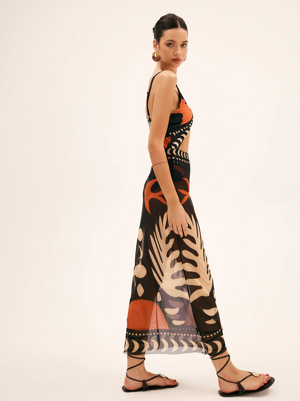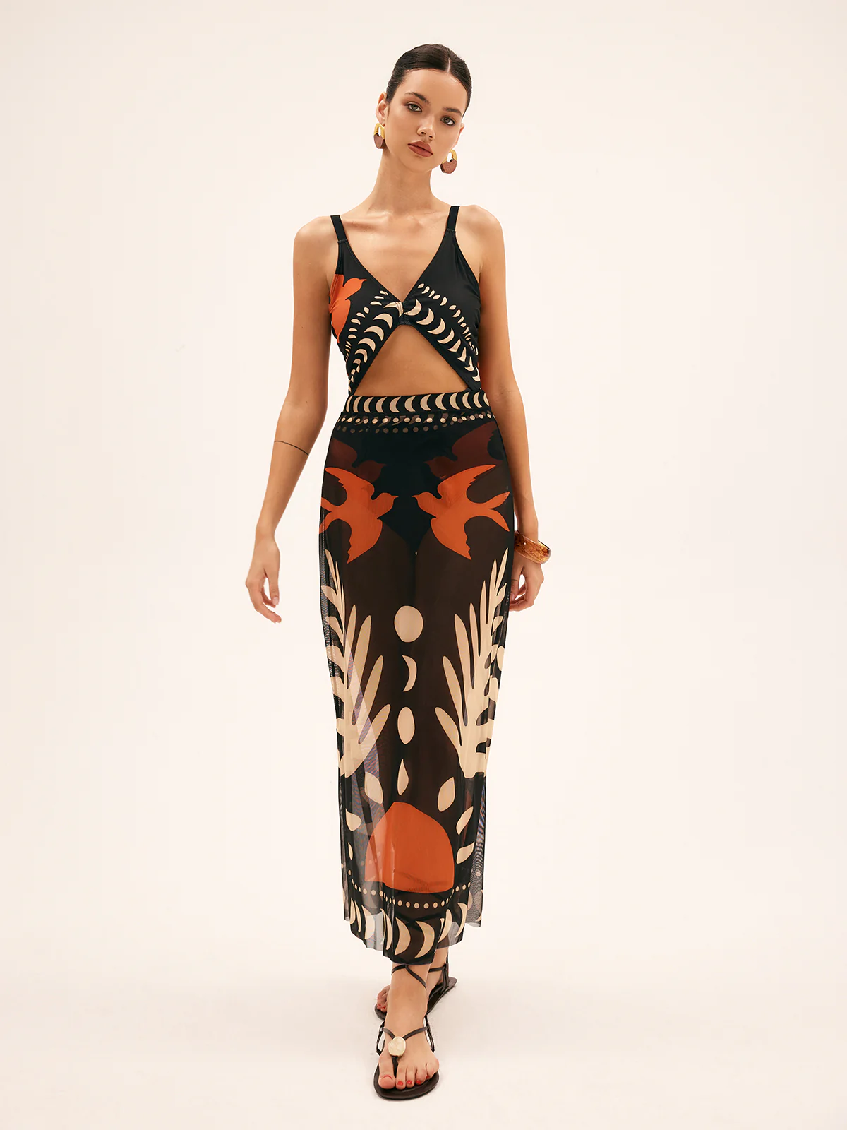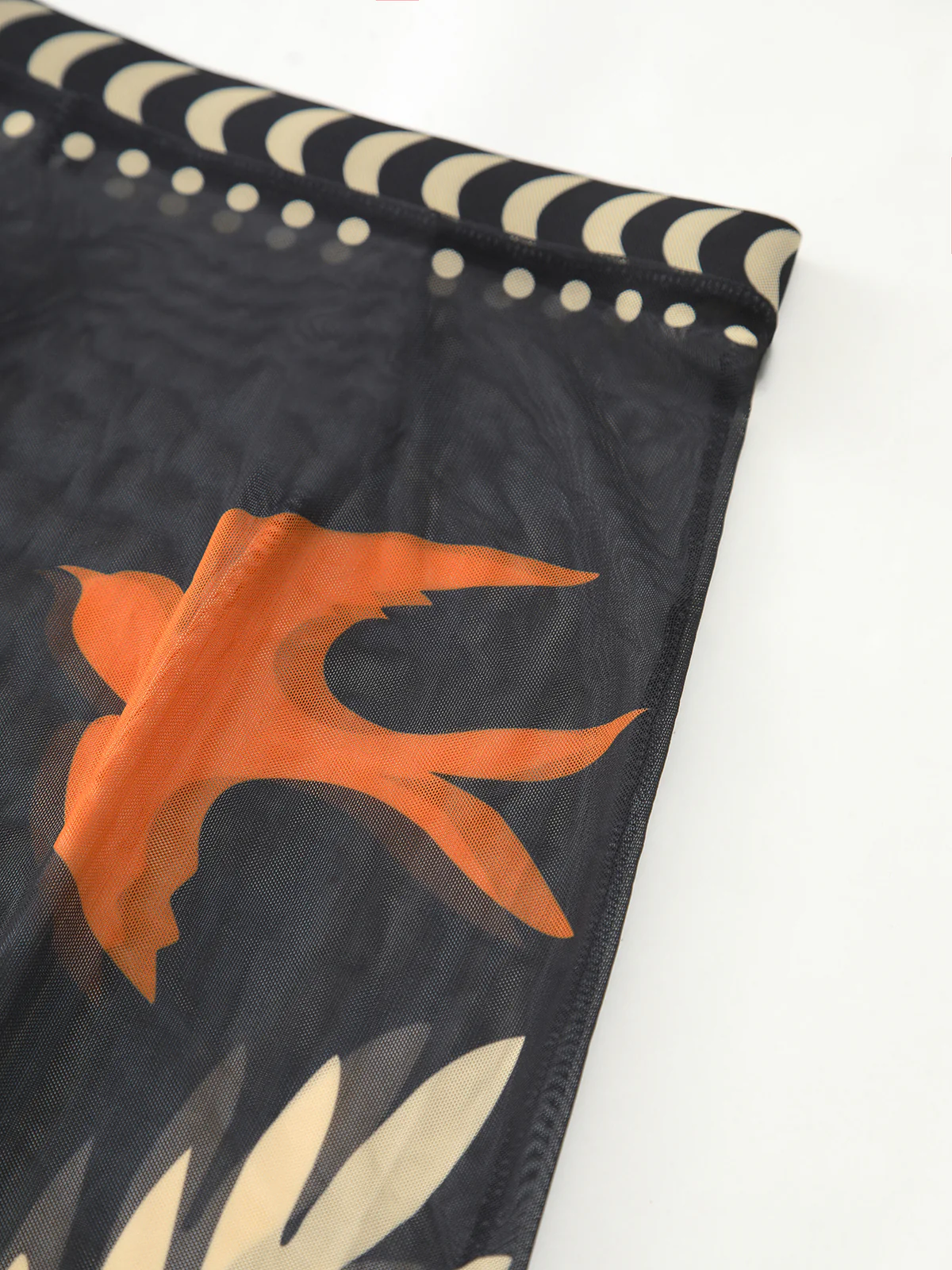 Bird Print Mesh Cover Up Maxi Skirt