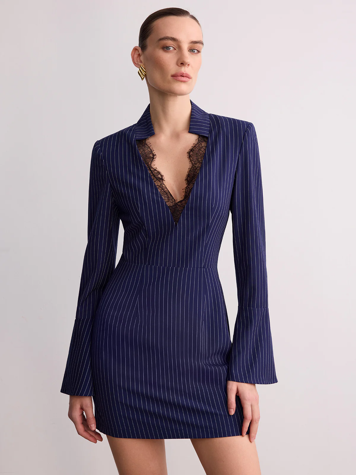 Striped Lace V-Neck Mini Dress
