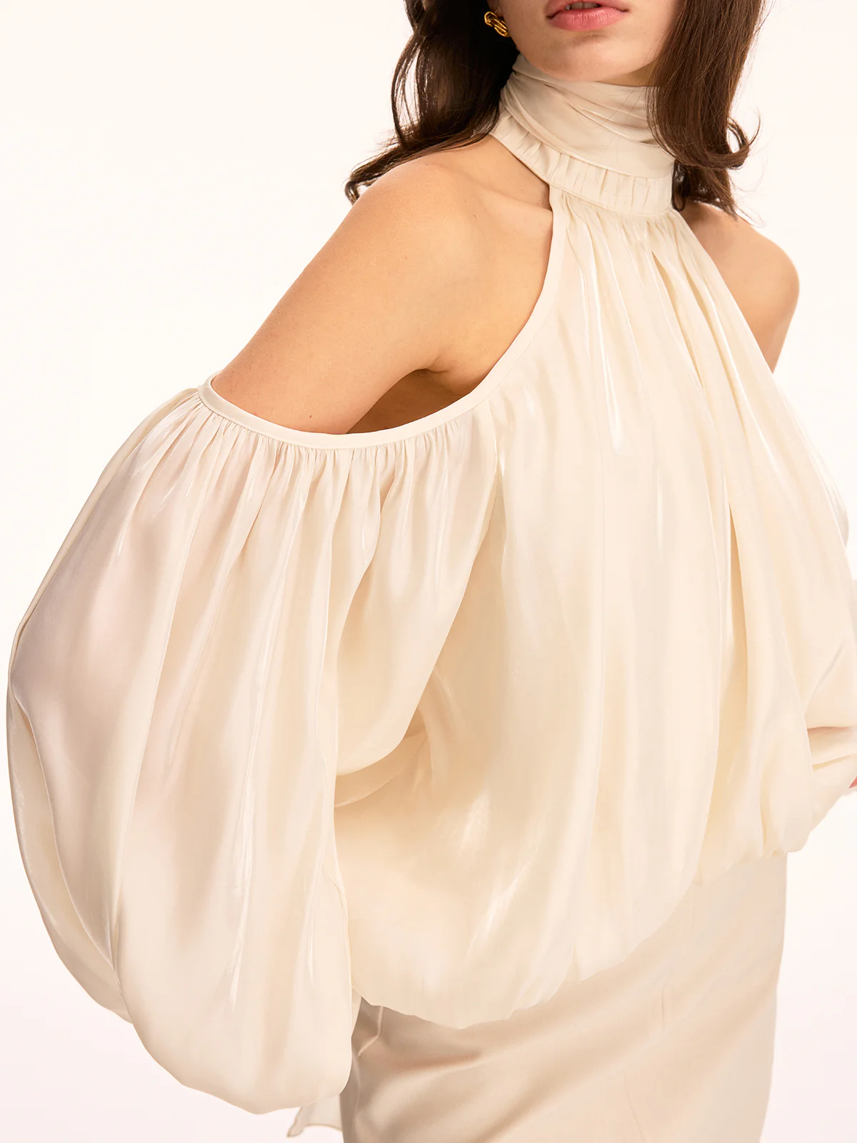 Cold Shoulder Halter Puff Sleeve Blouse
