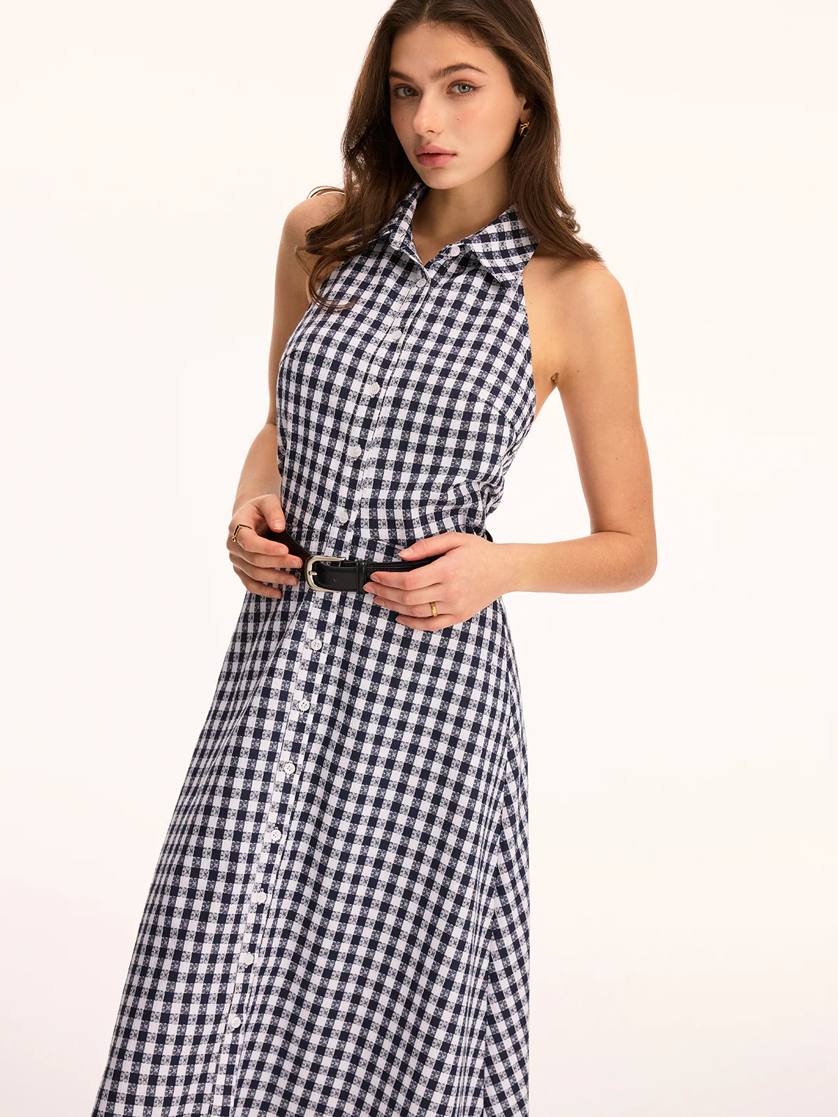 Gingham Sleeveless Maxi Shirt Dress