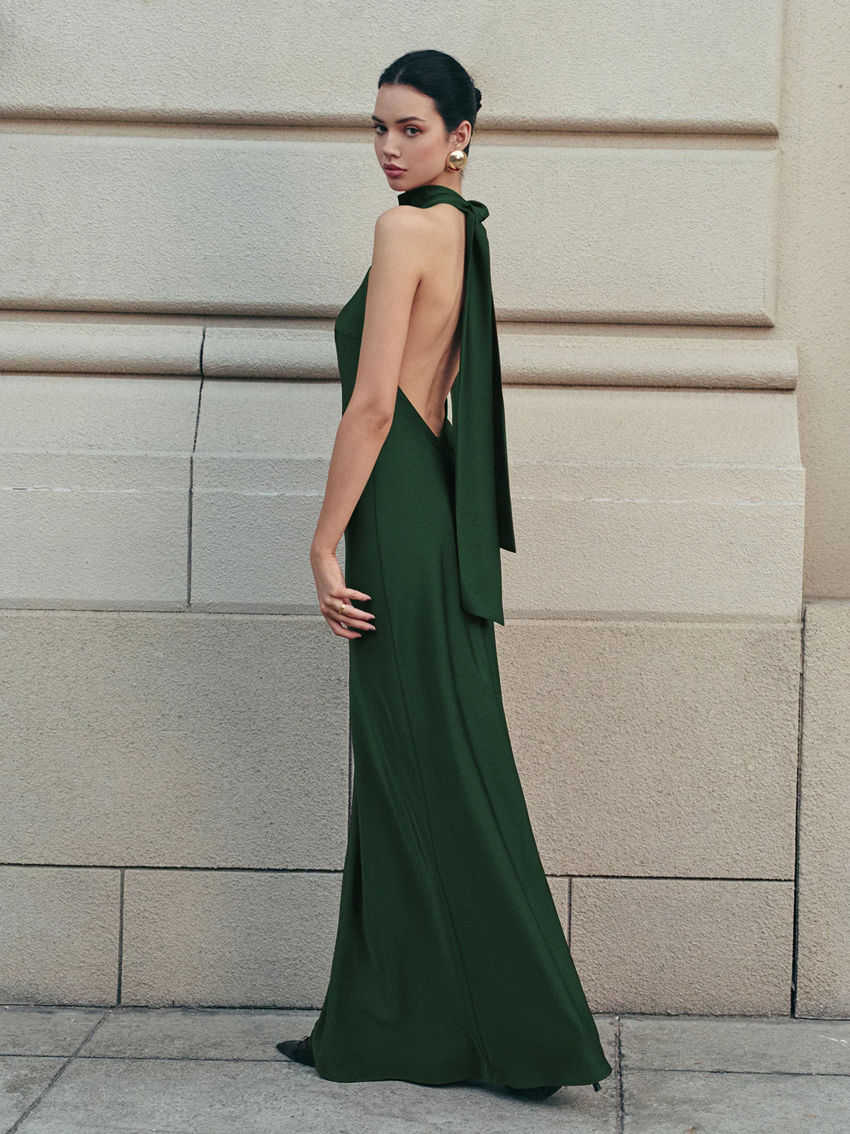 Open Back Satin Halter Dress