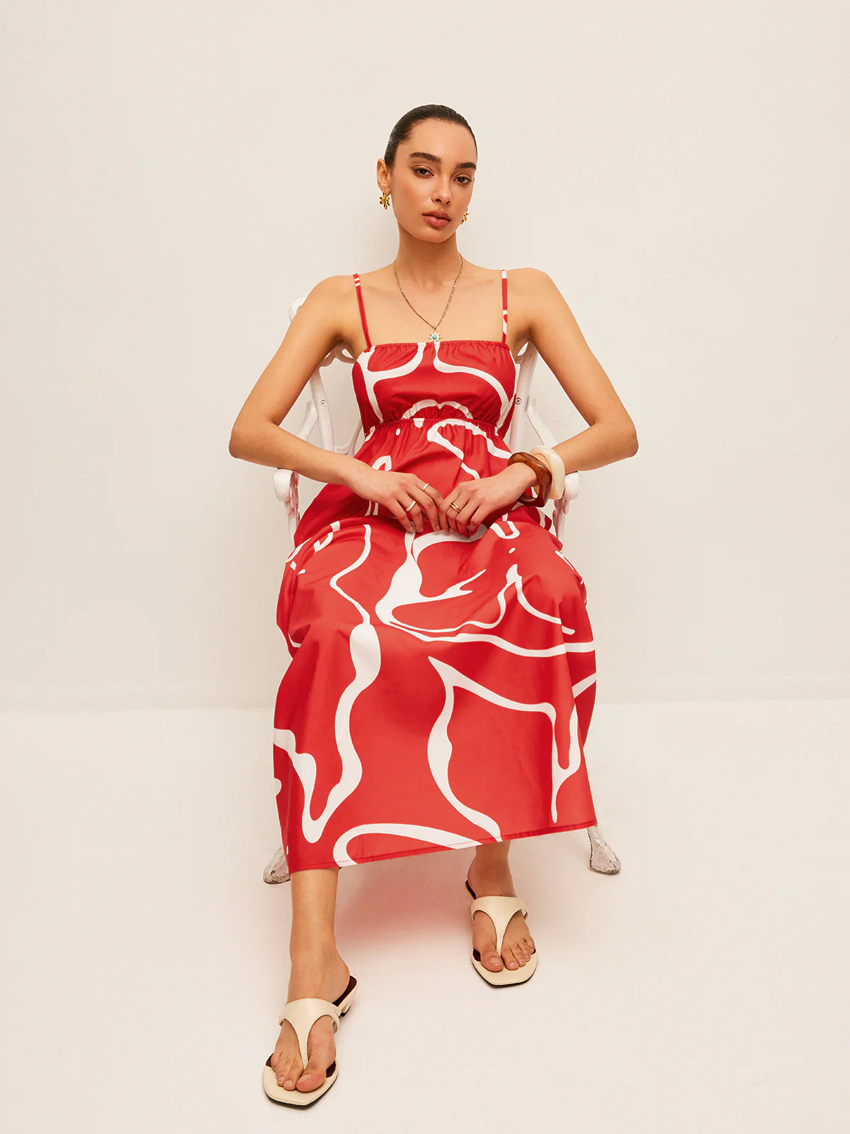 Ruffle Floral Print Cami Long Dress