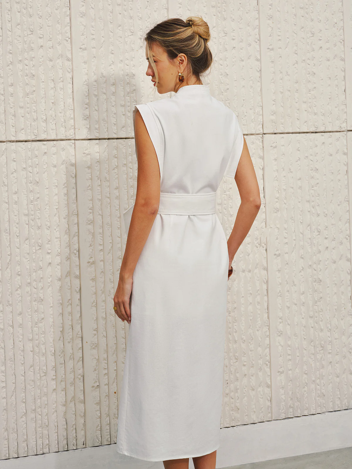 Cotton-Linen Sleeveless V-Neck Bow Split Dress
