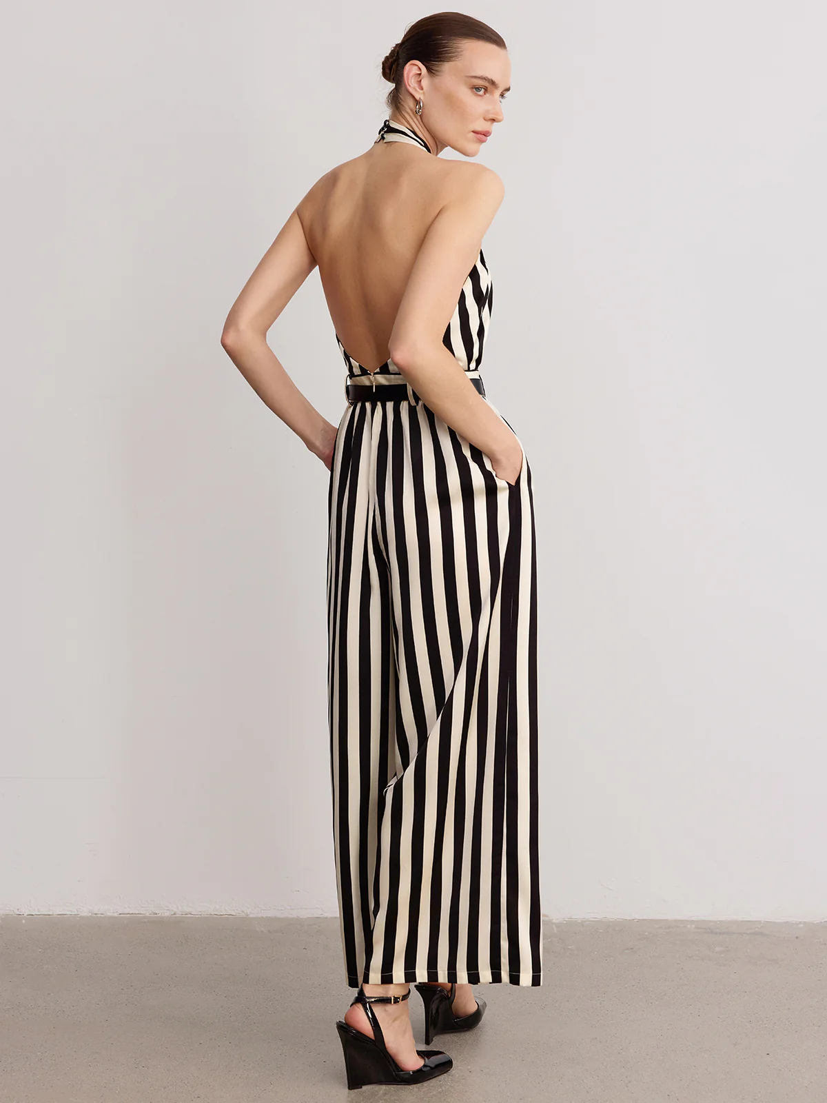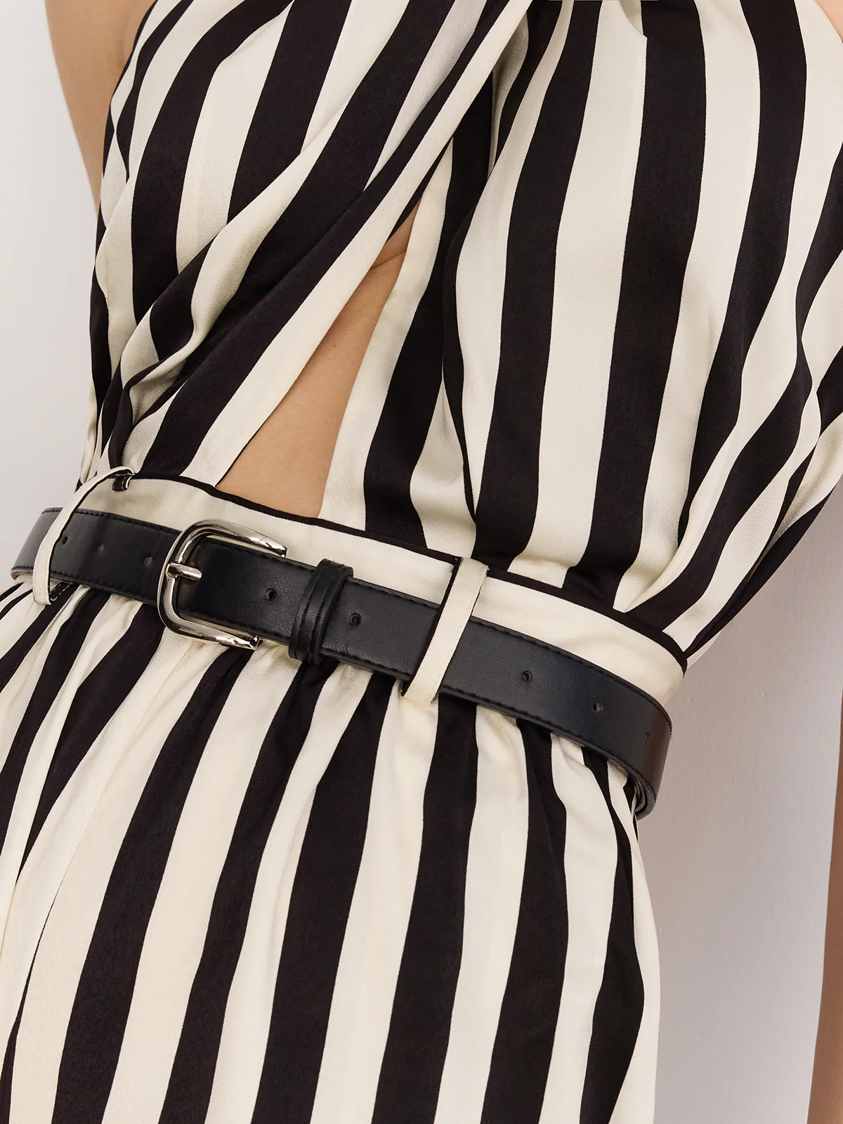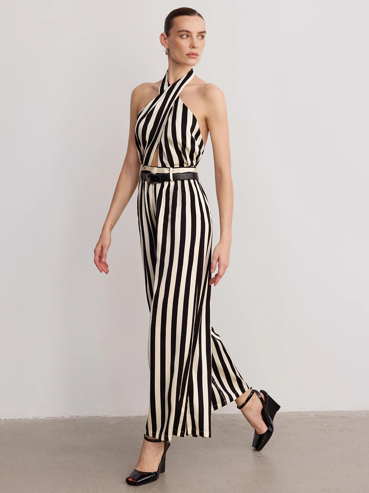 Halter Striped Belted Jumpsuit