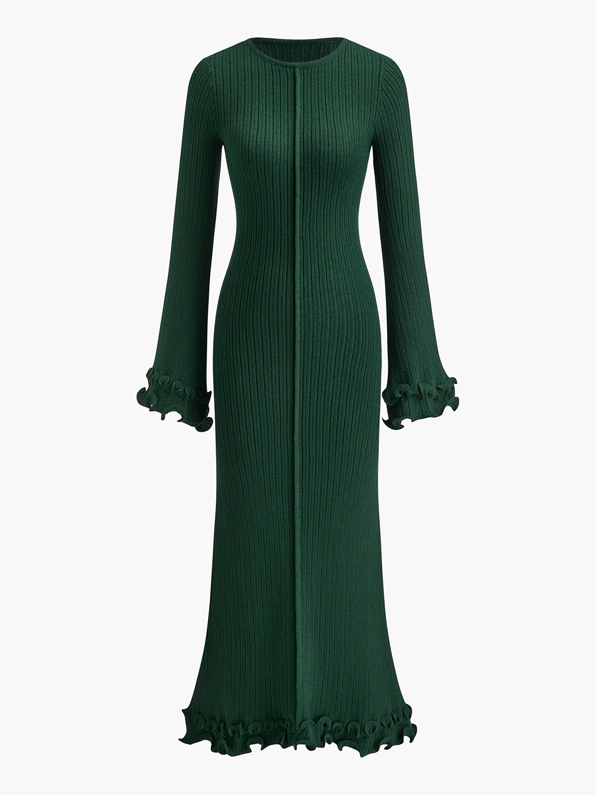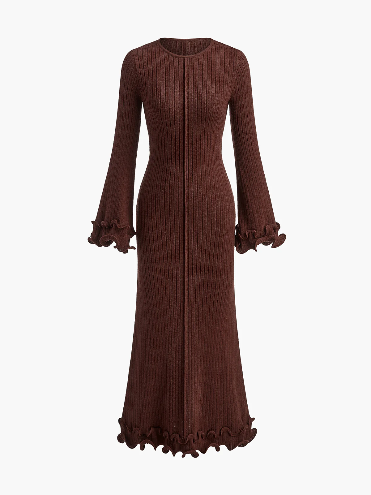 Semi-Sheer Piping Ruffle Drawstring Knit Dress