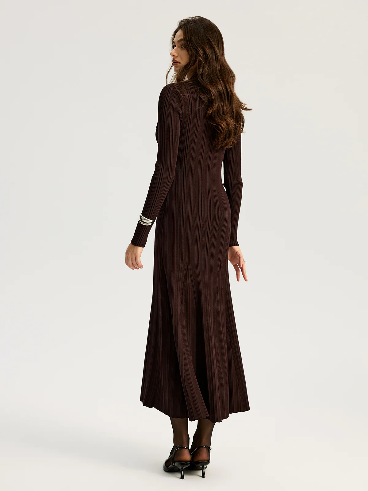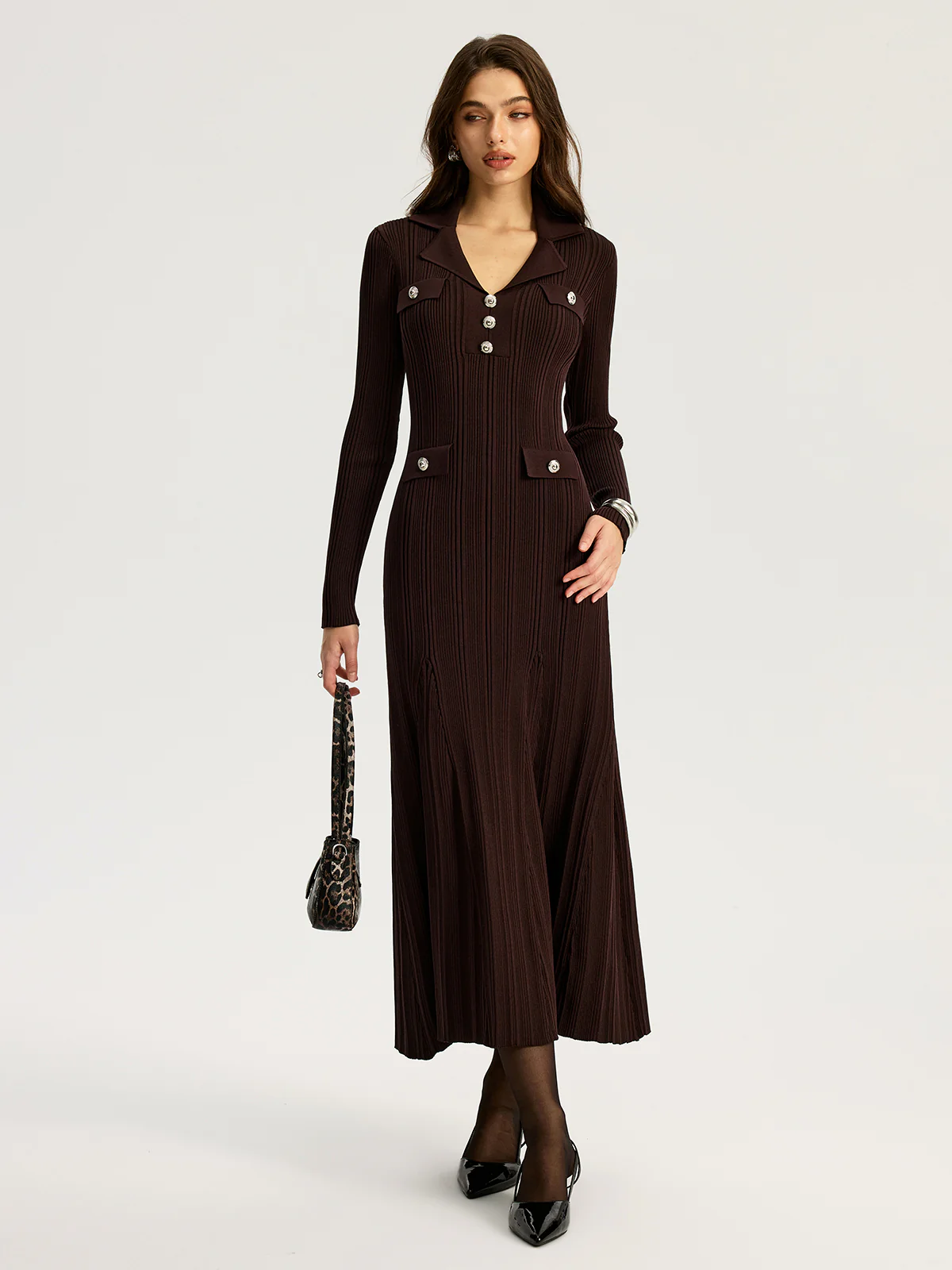 Lapel Metal Detail Knit Maxi Dress
