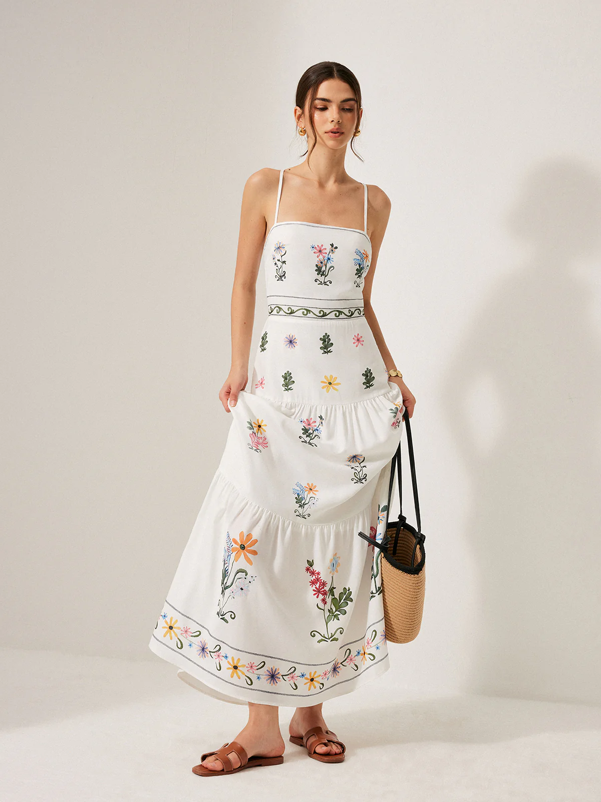 Birdie Print Pockets Cami Long Dress
