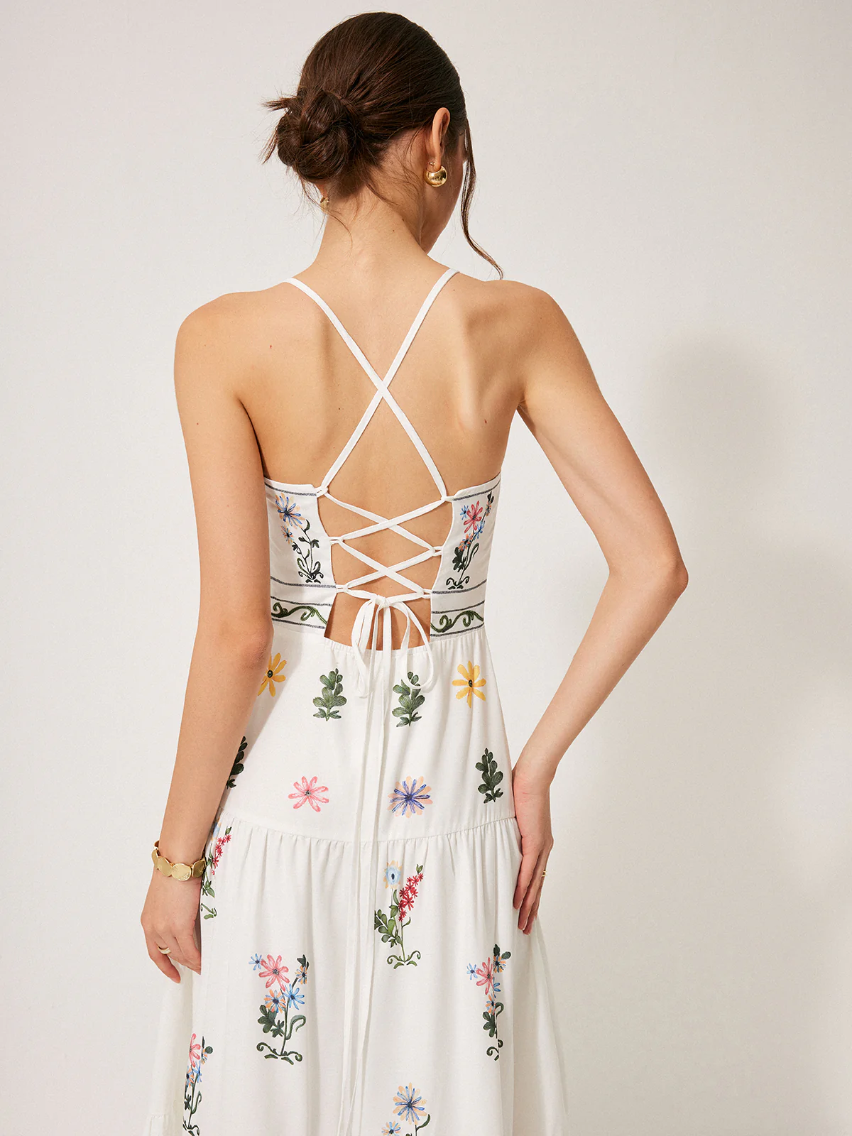 Boho Lace-Up Back Cami Dress