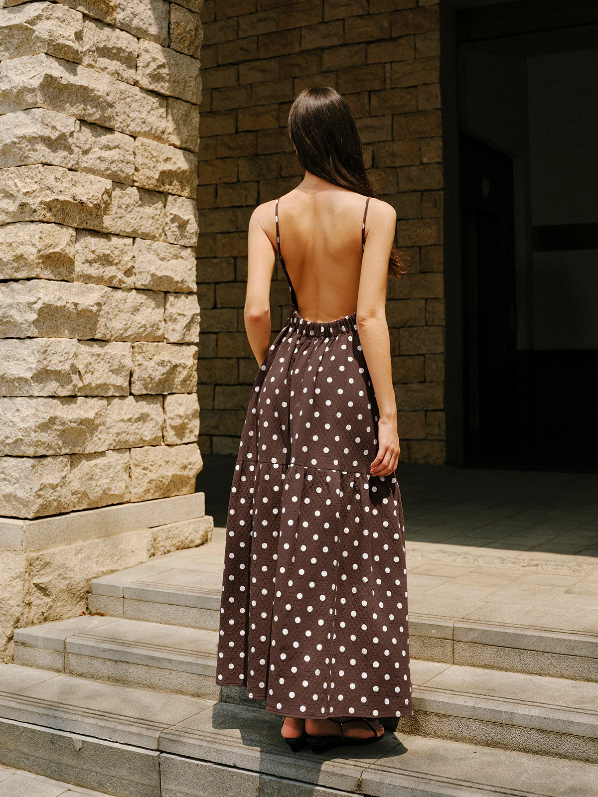 Cotton Backless Polka Dot Dress