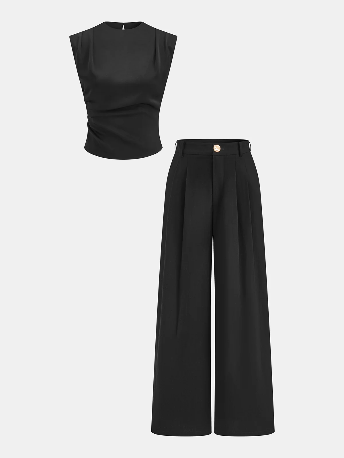 Tie-Back Denim Sleeveless Top & Shorts Set