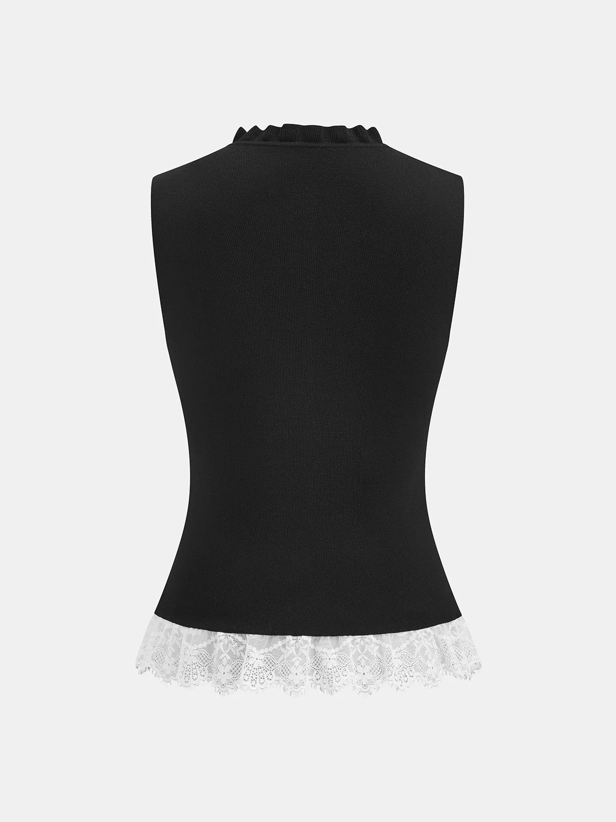 Lace Trim Button Front Knit Vest