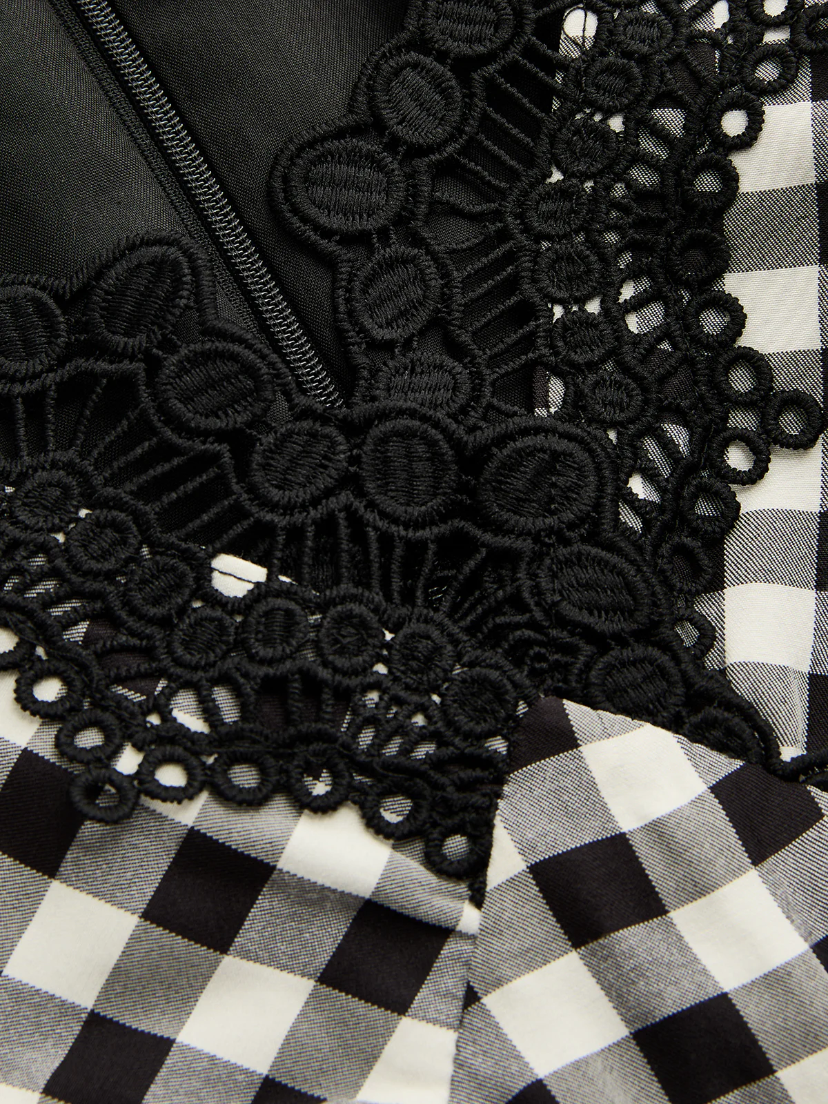 Sleeveless Lace Trim Gingham Maxi Dress