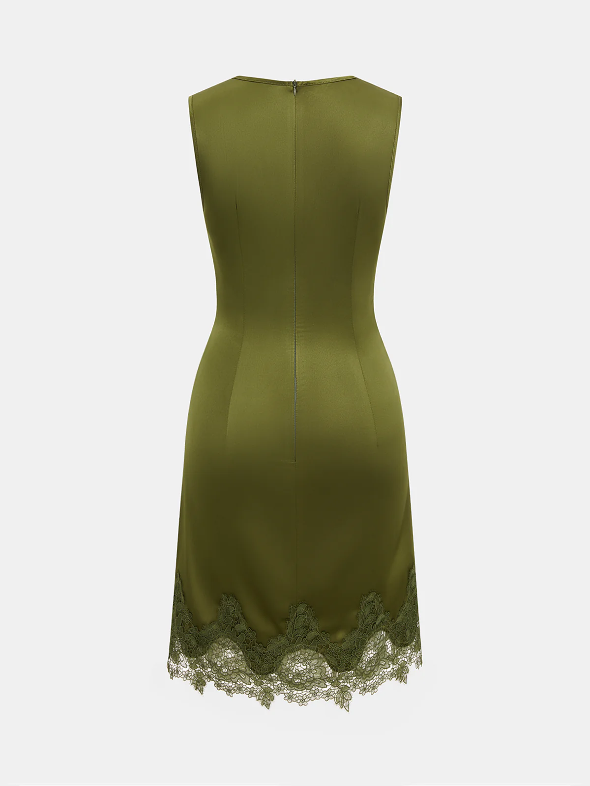 Satin Lace Hem Ruched Sleeveless Mini Dress