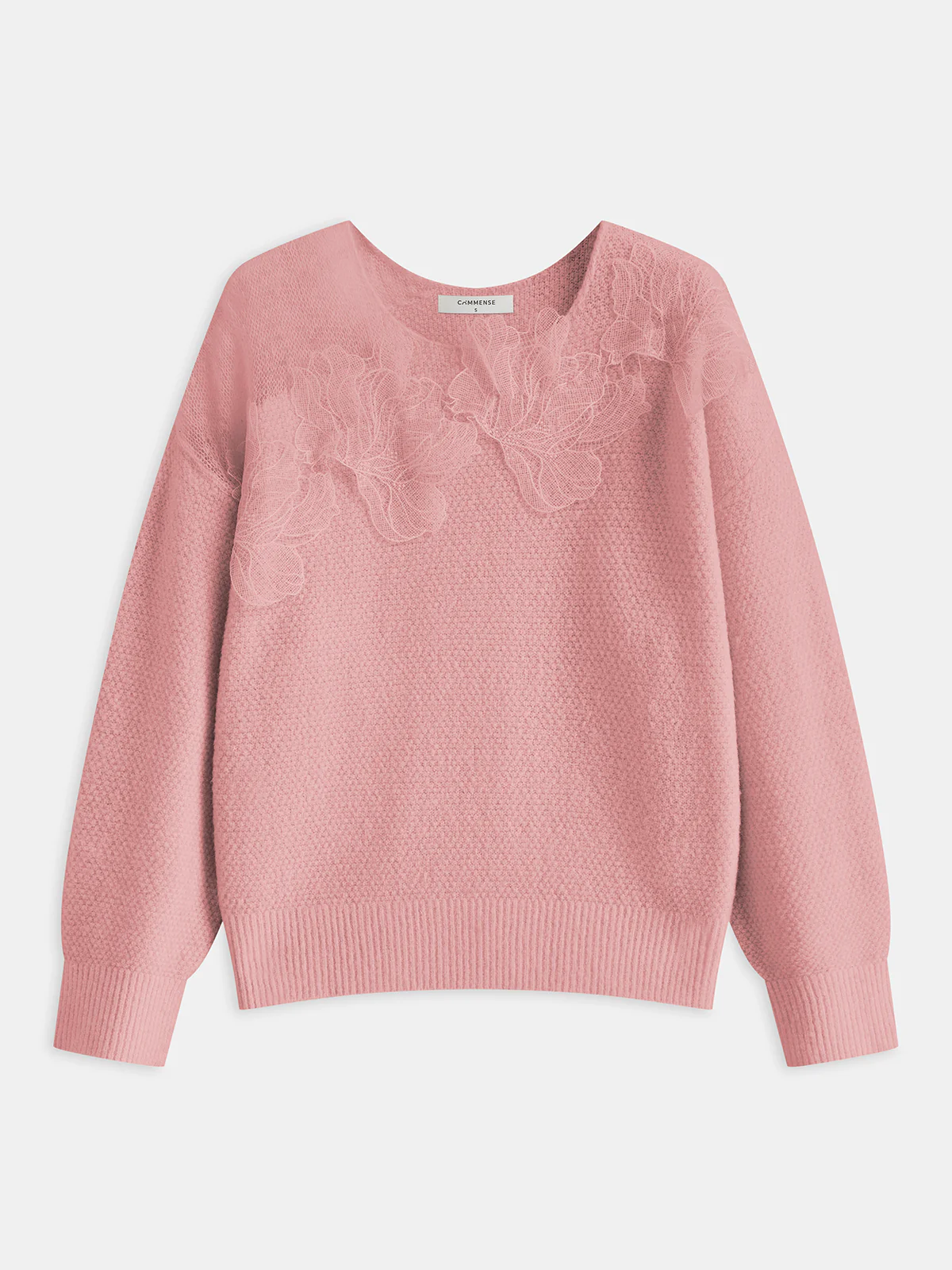 Floral lace Sweater Semi Sheer Round Neck Sweater