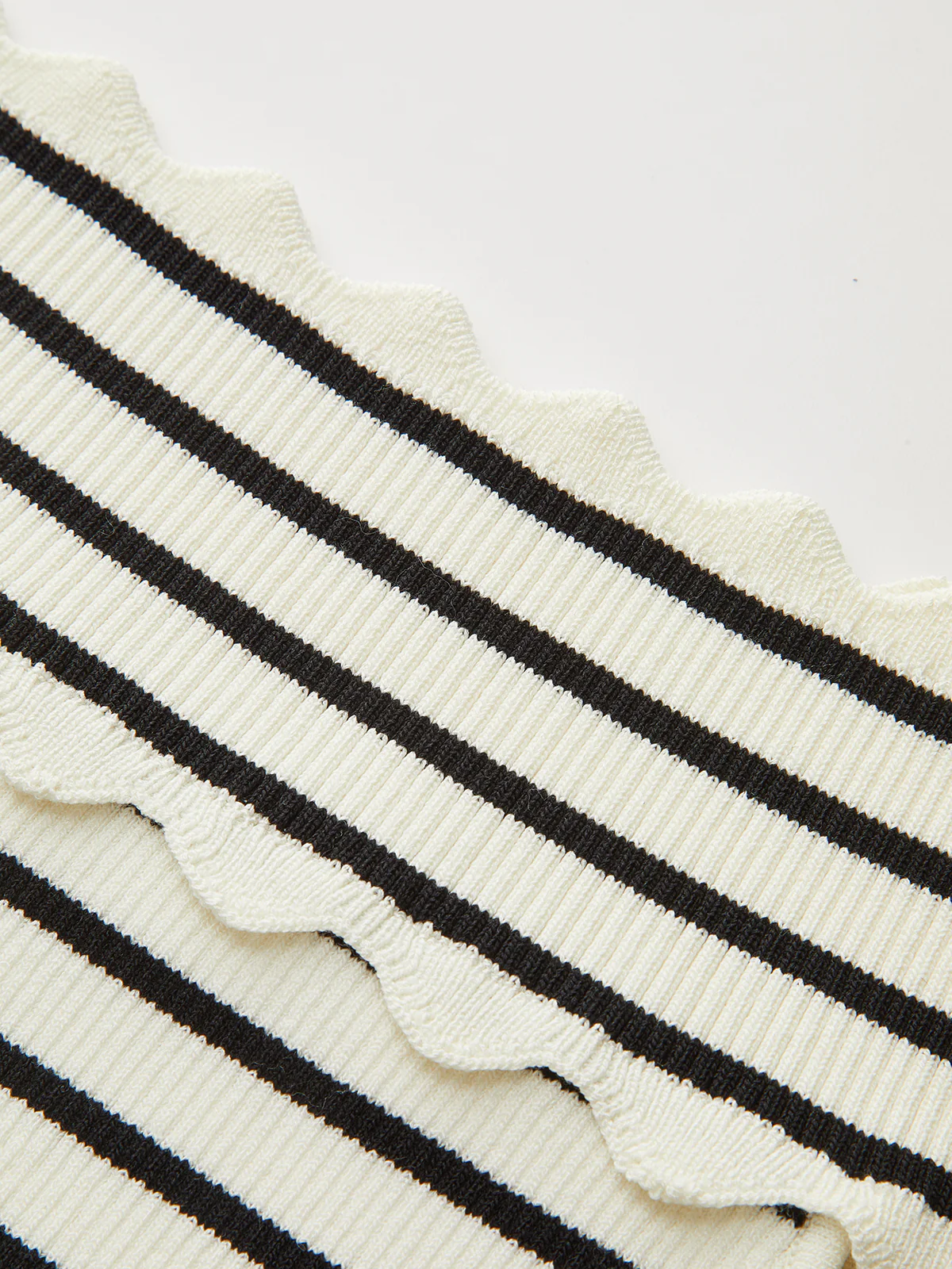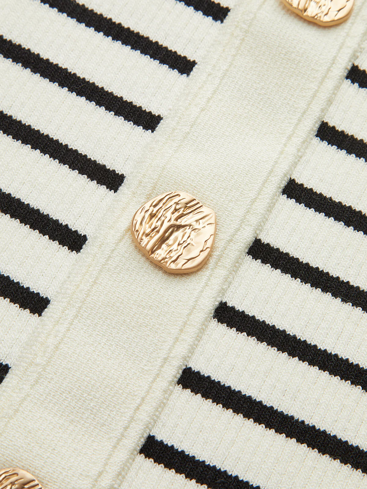 Tie Neck Contrast Trim Wool Blend Cardigan