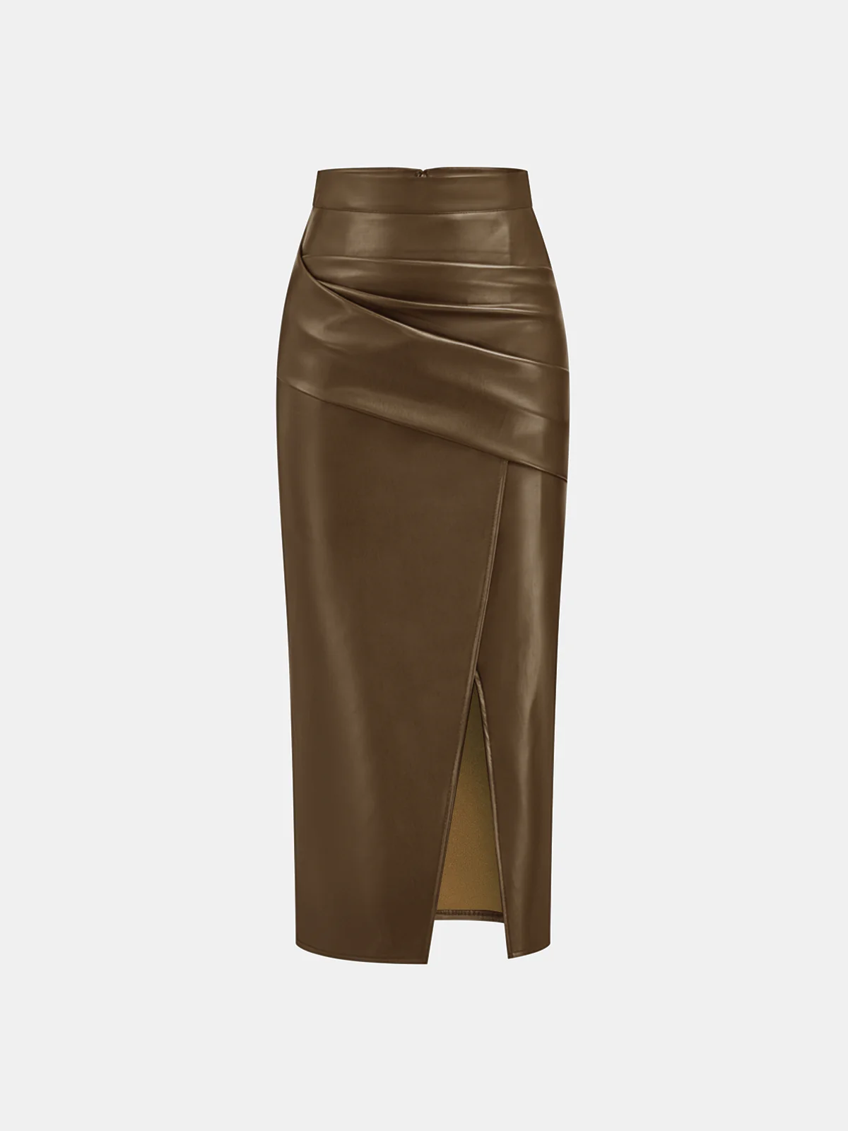 Metal Detail Long-Sleeve Ruched Maxi Dress