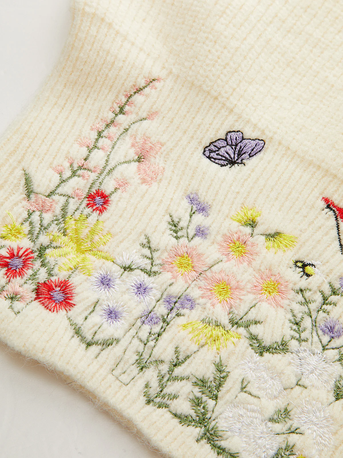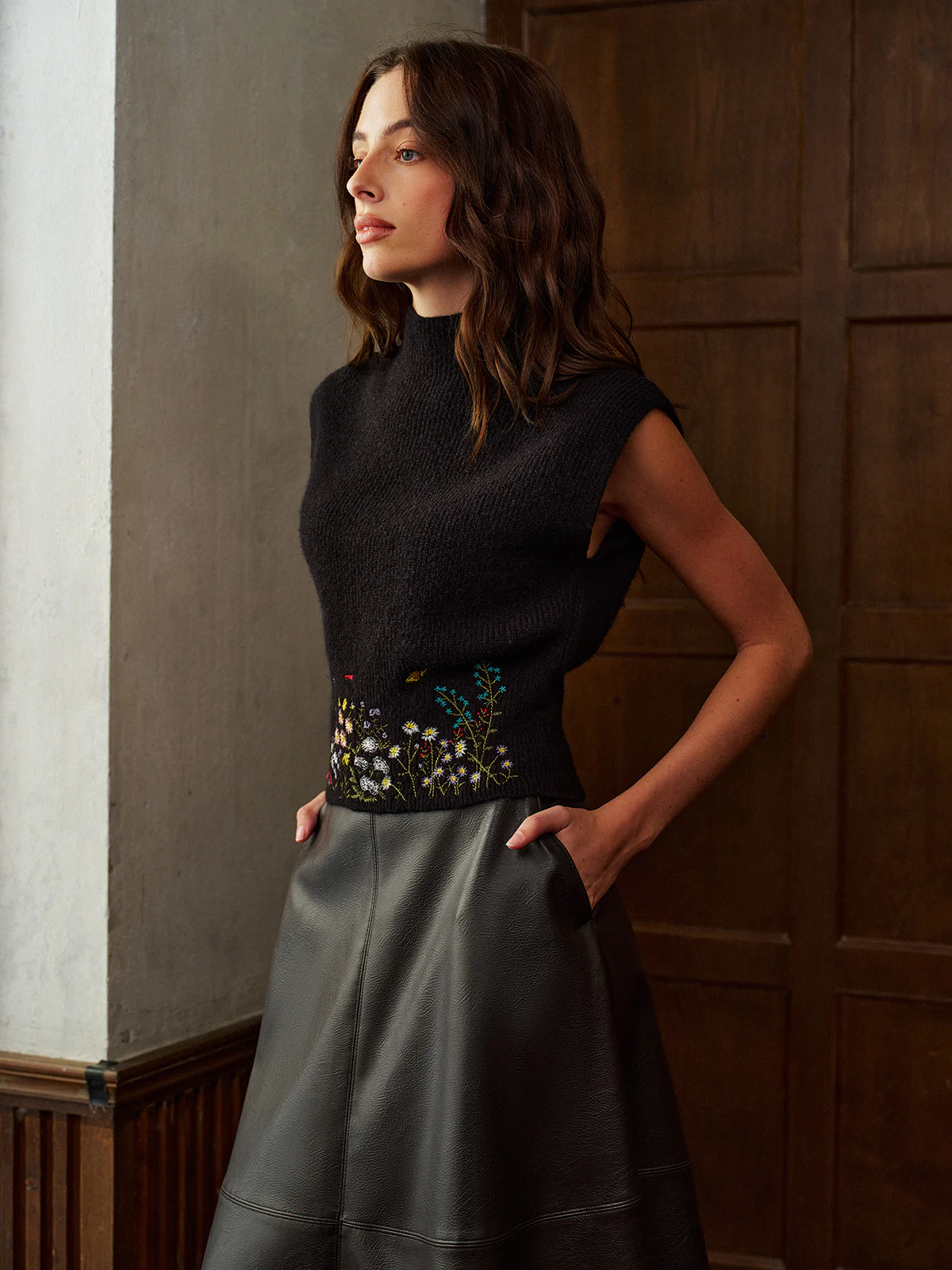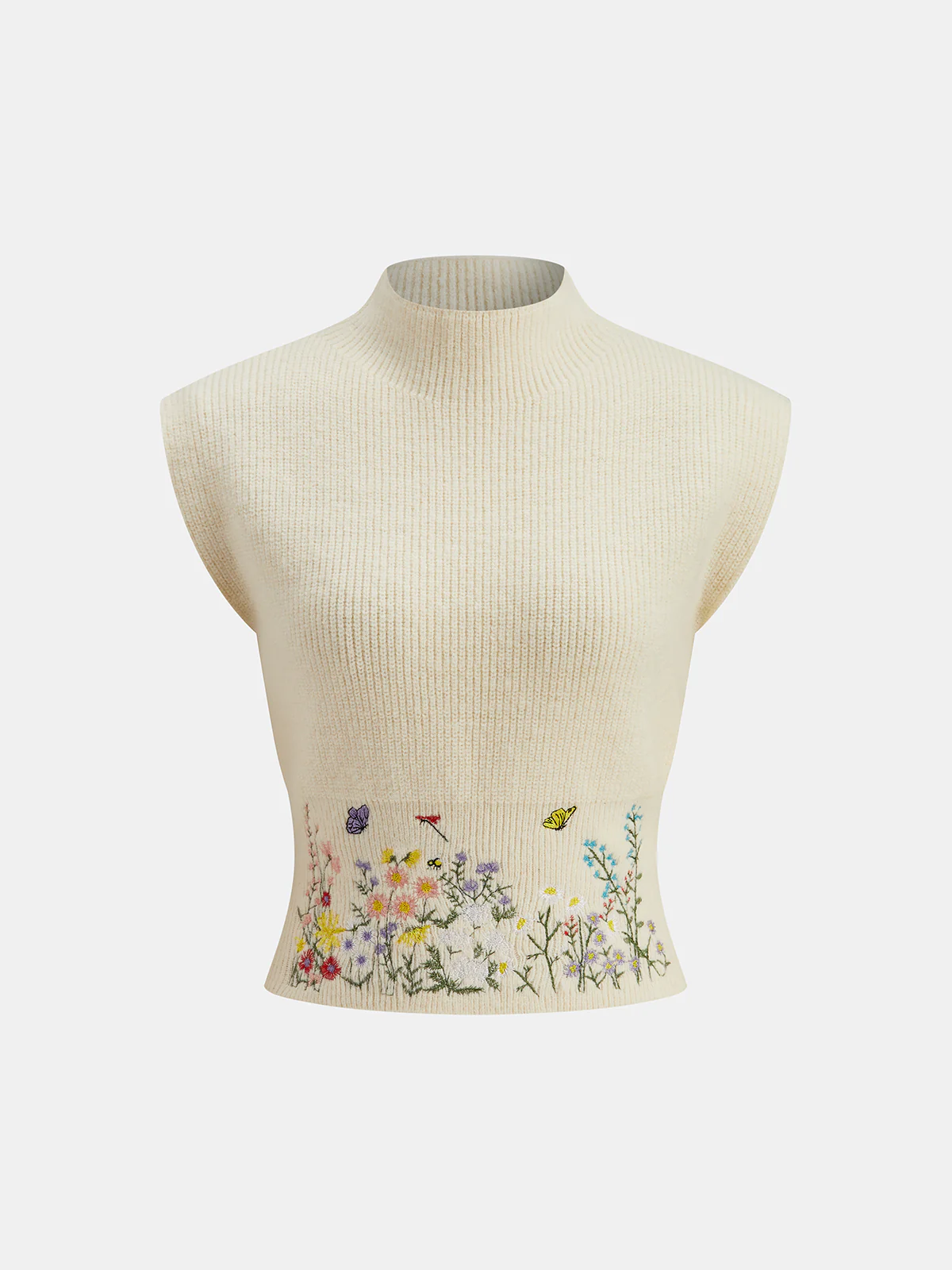 Stand Collar Embroidery Floral Sweater Vest