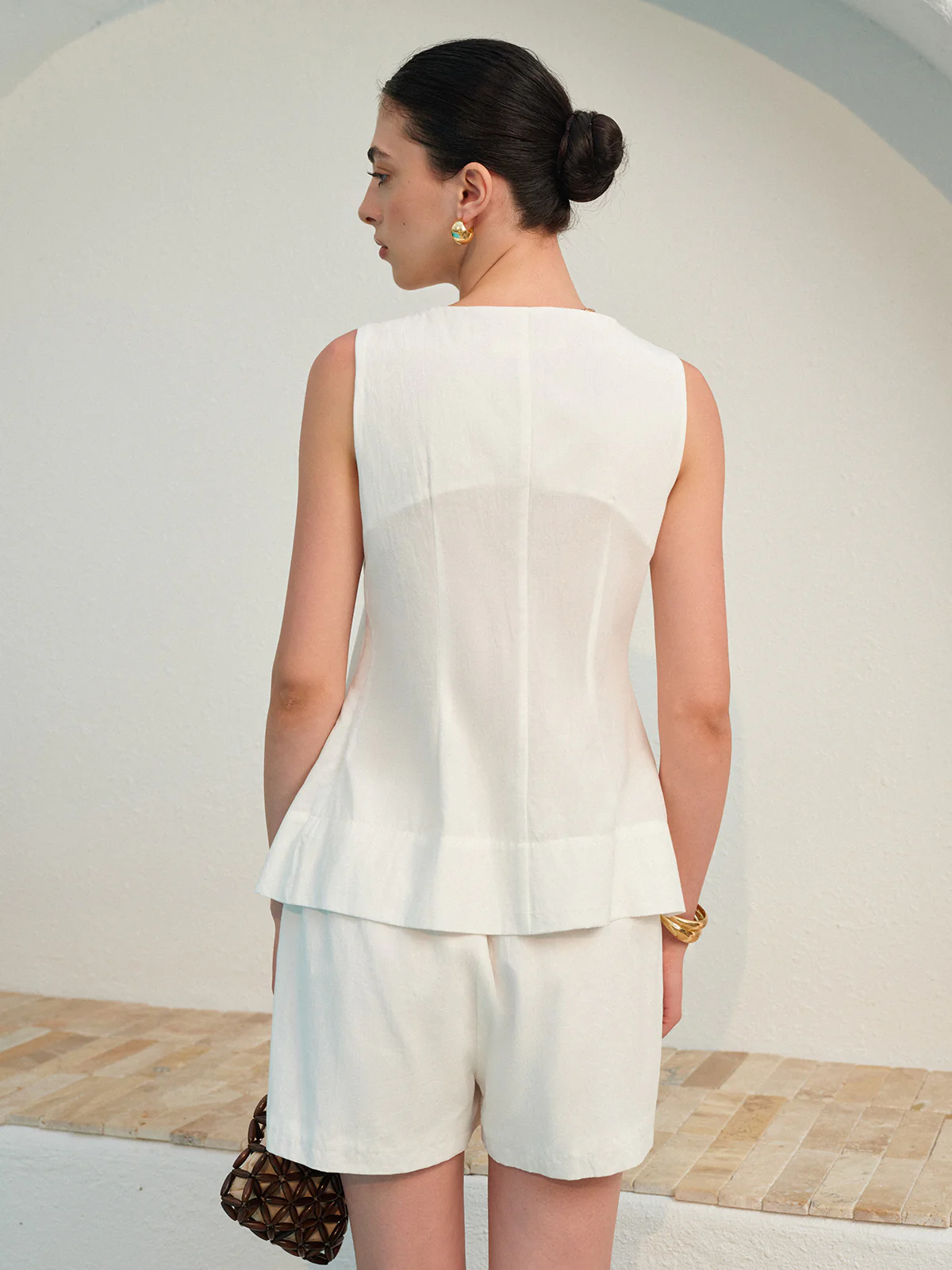 Square Neck Pleated Shorts Set