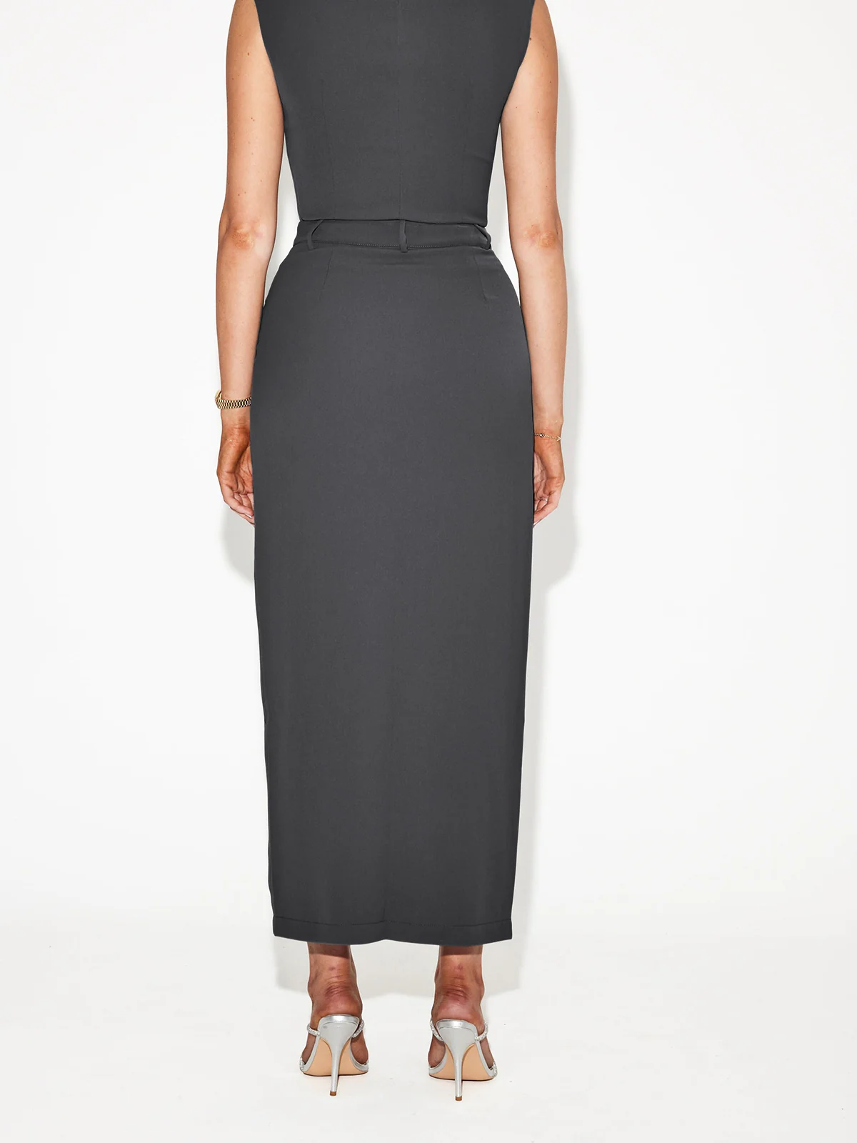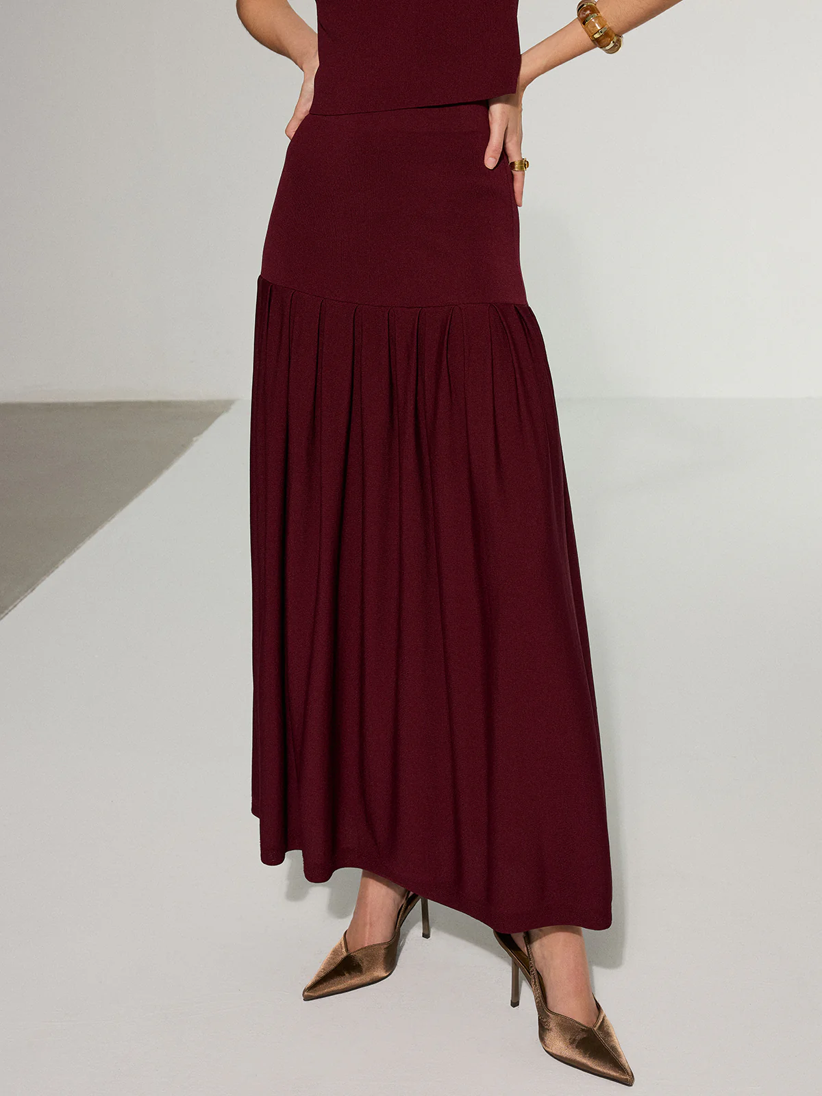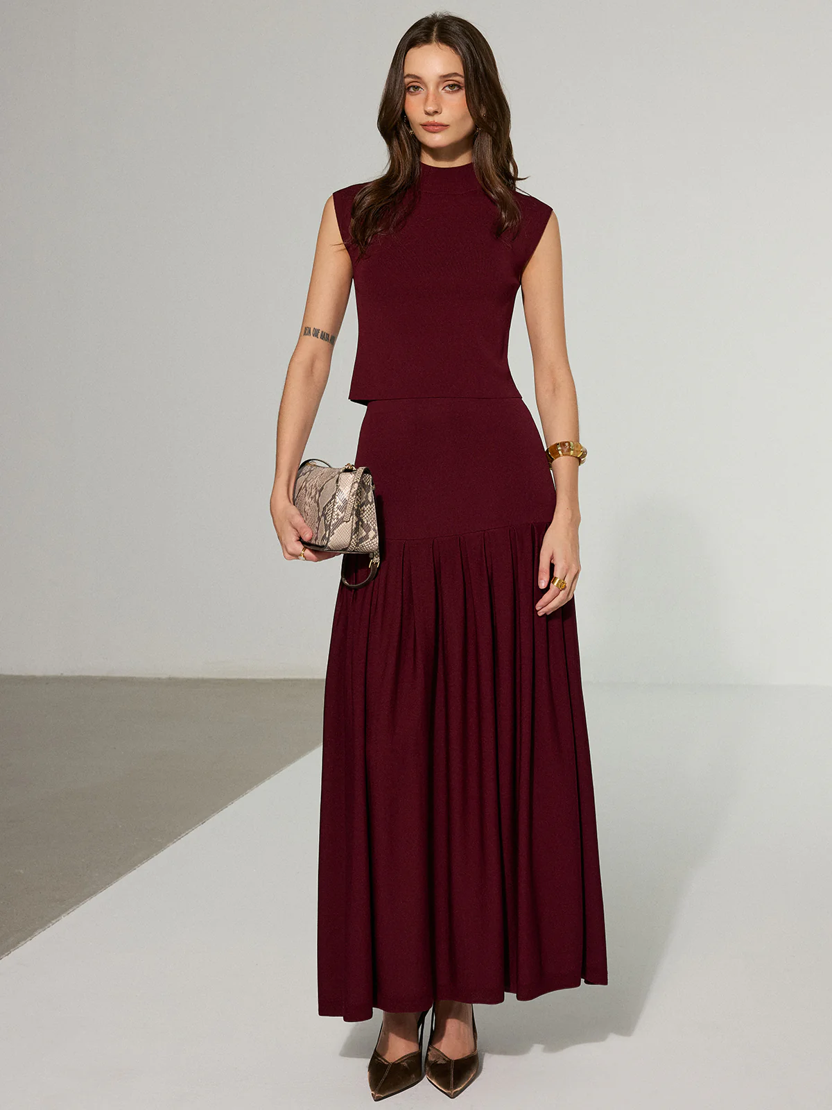Mock Neck Sleeveless Top and Pleated Midi Skirt Set