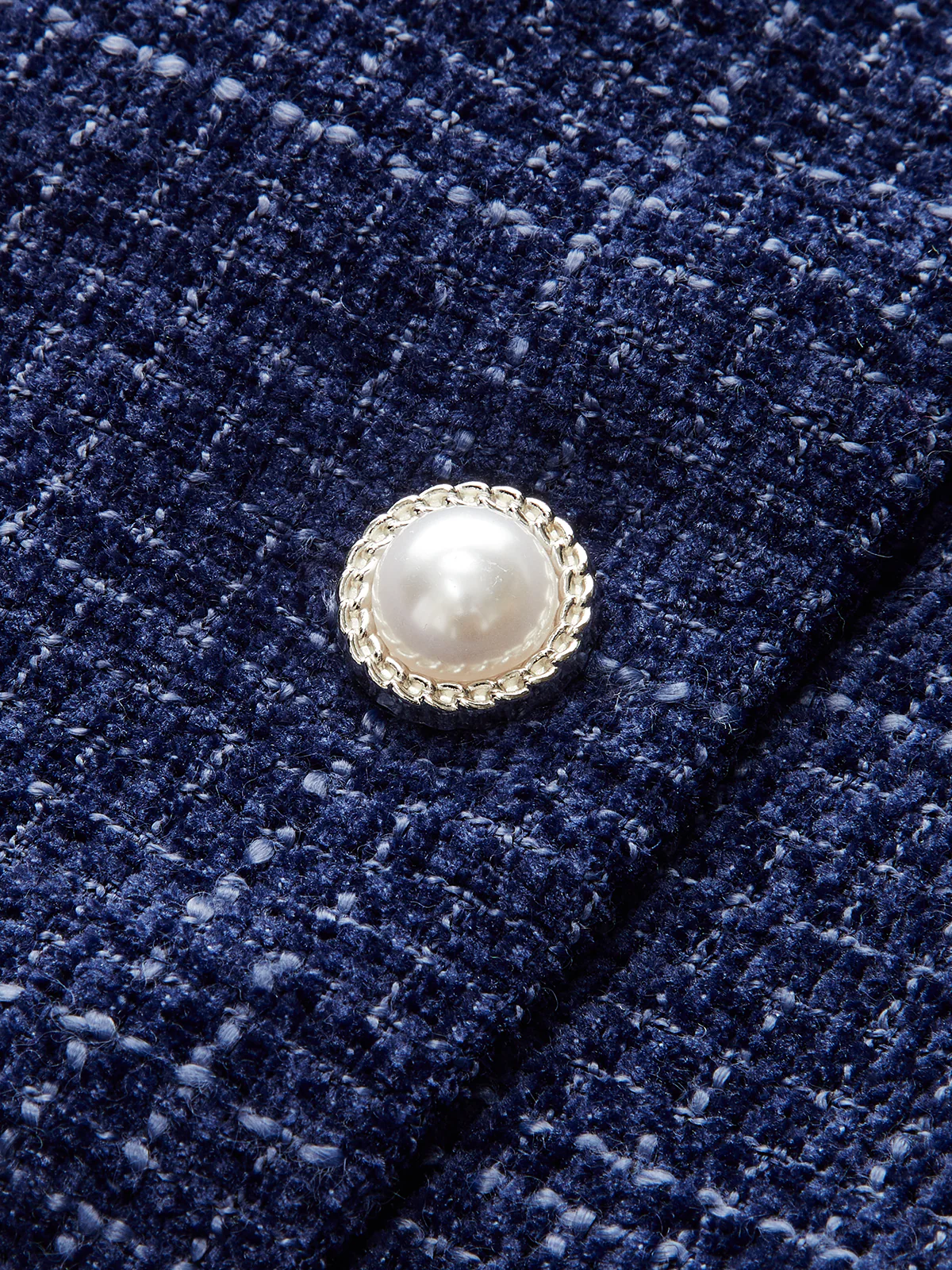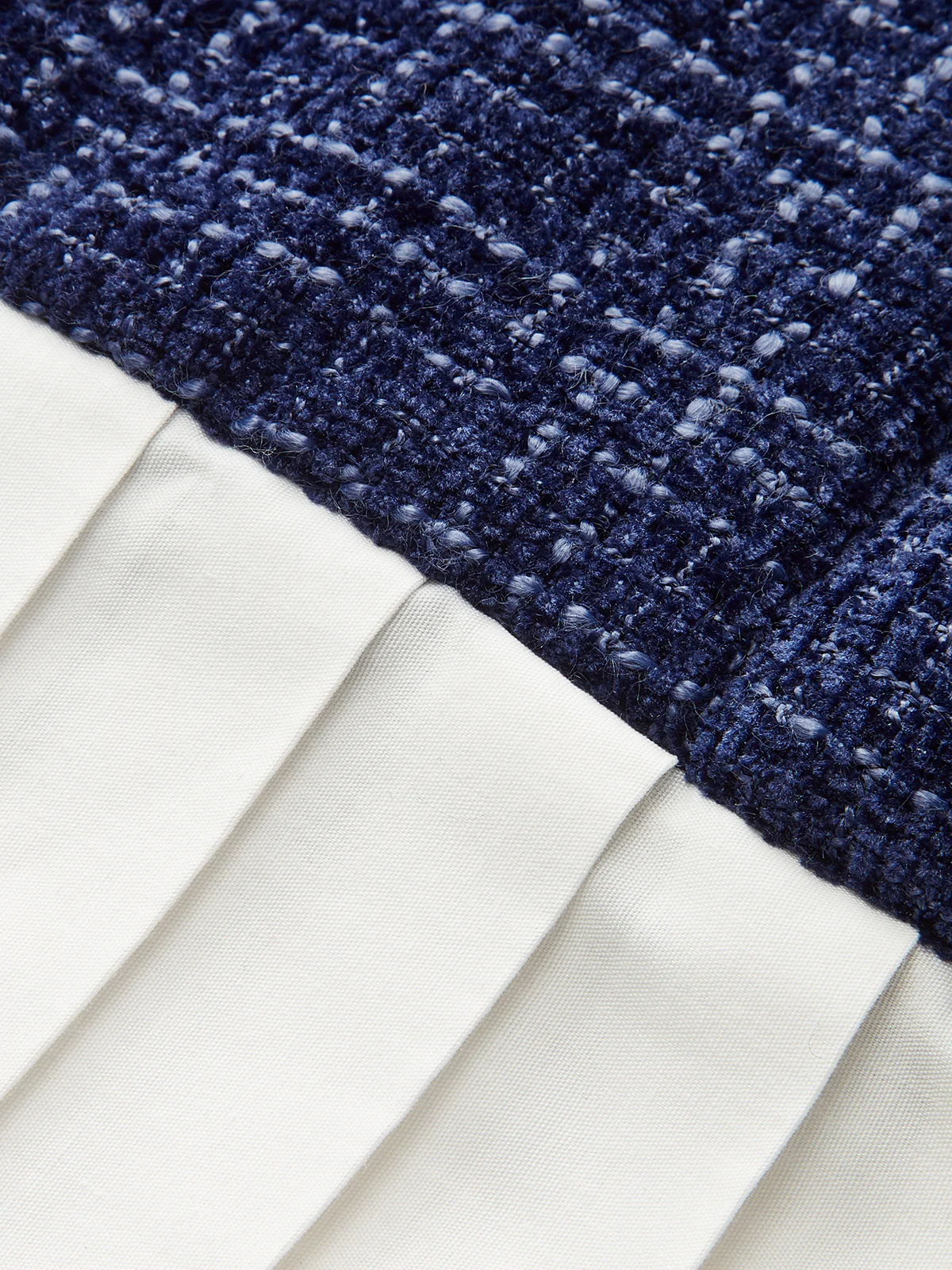 Pleated Hem Bow Neckline Tweed Mini Dress
