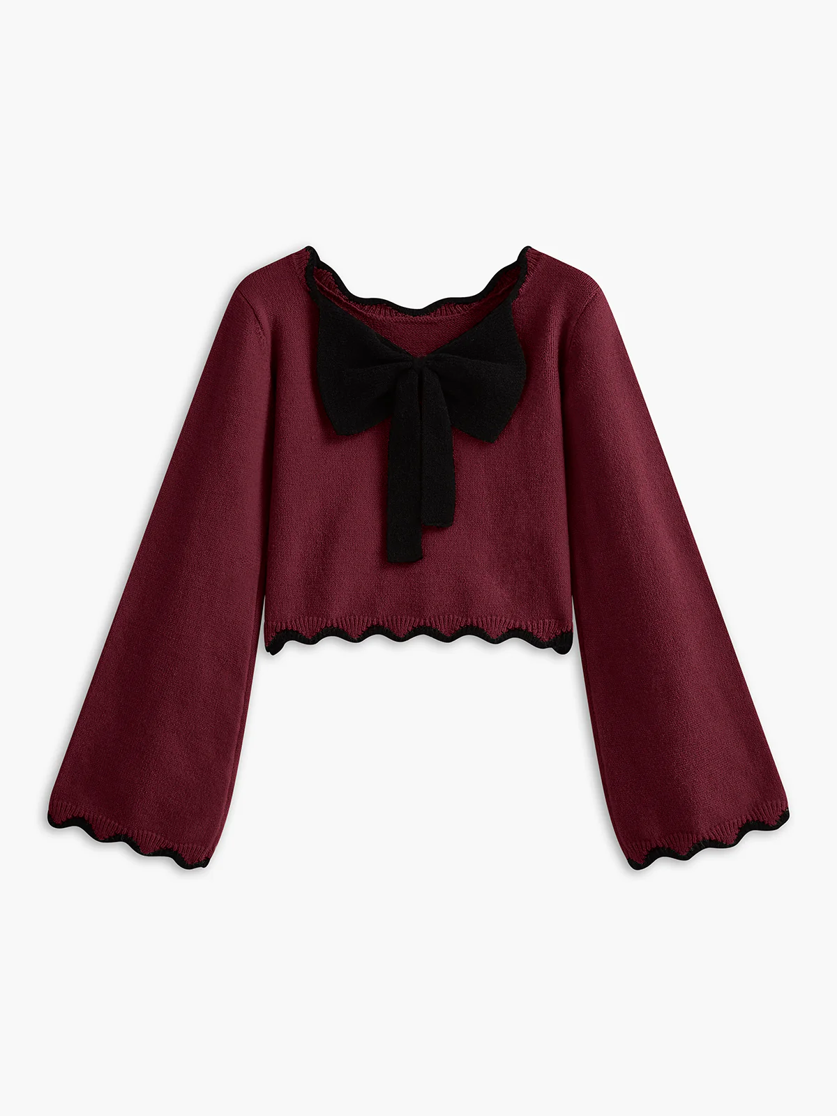 Contrast Wave Trim Bow Sweater