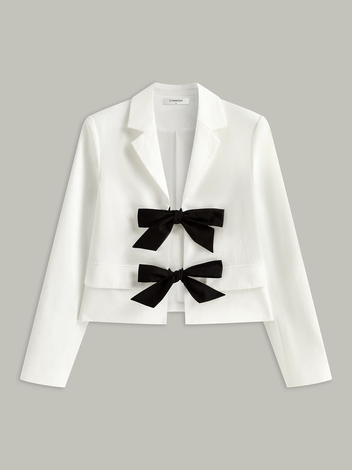 Cotton & Linen Cropped Blazer with Bow
