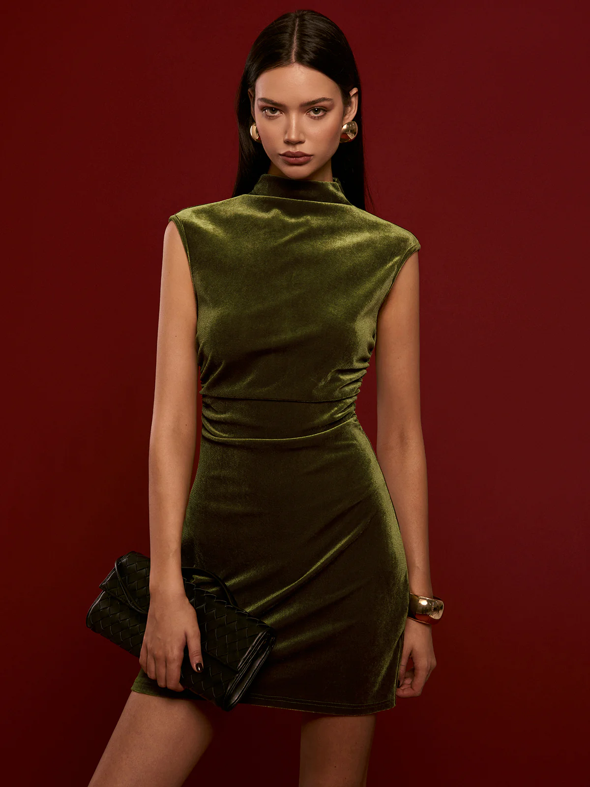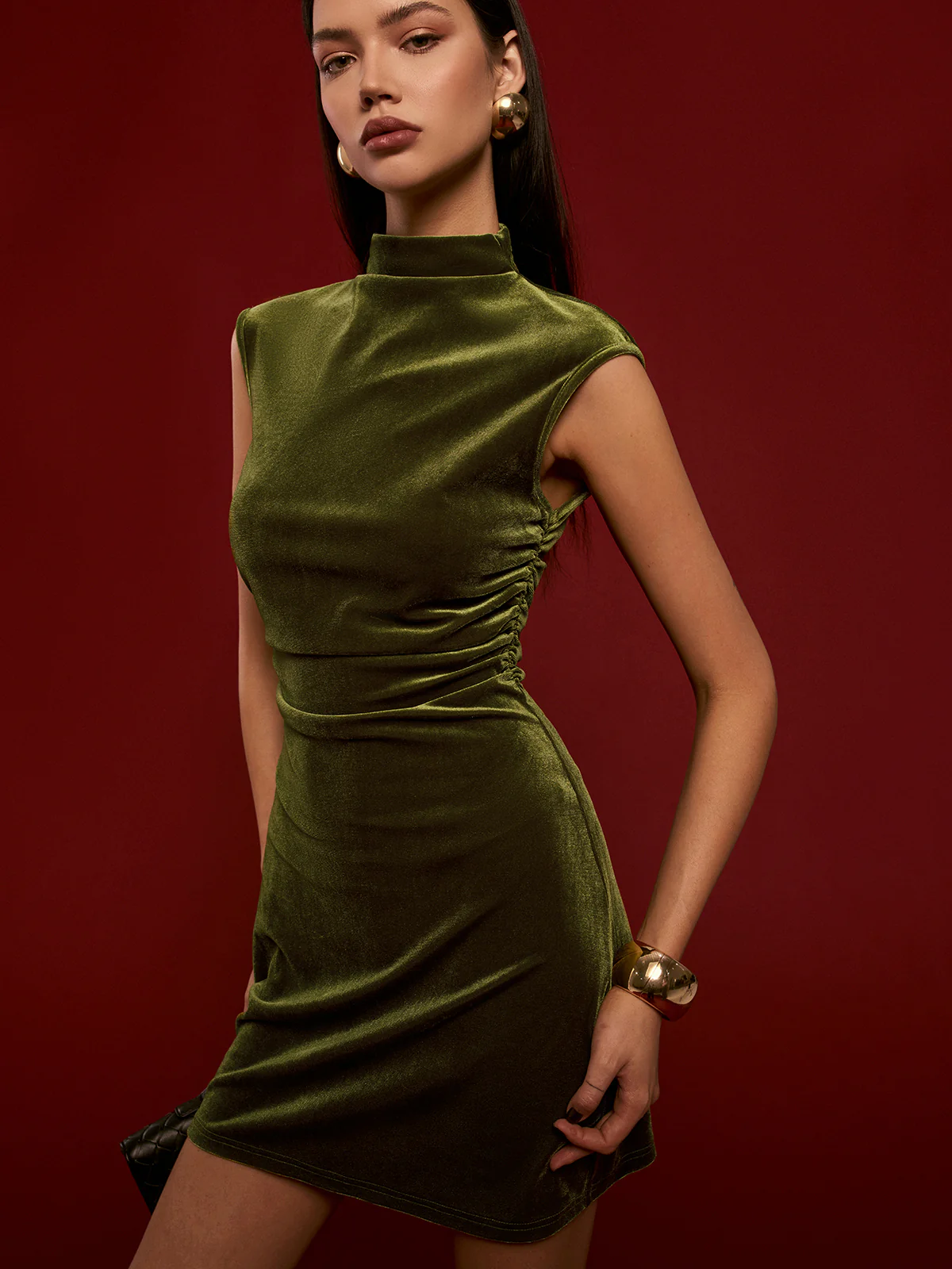 Mock Neck Sleeveless Velvet Dress