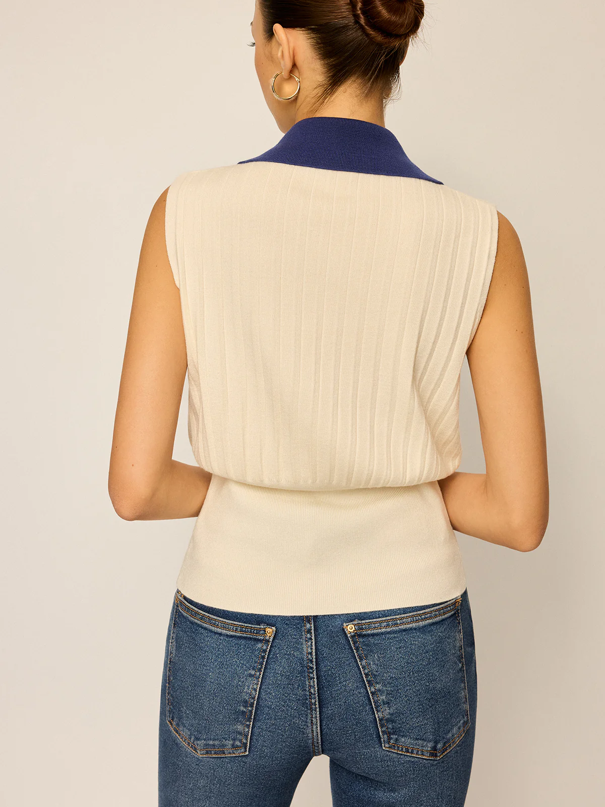 Two-Tone Collared Knit Vest